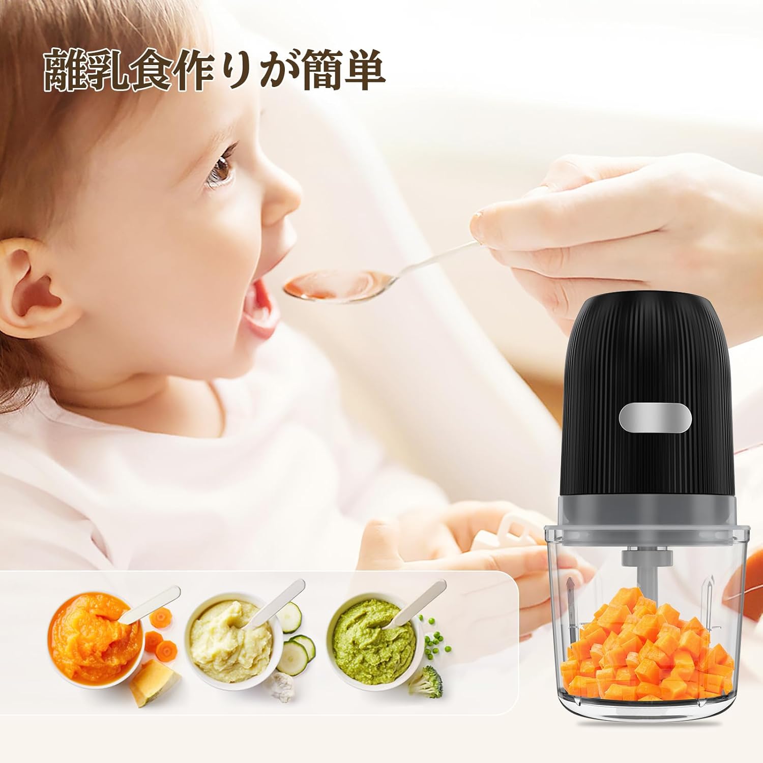 ハイパワー フードチョッパー 電動 フードミキサー 2段階スピード 6枚刃カッター 600ML 調理家電