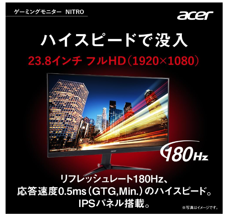 日本エイサー Acer Nitro ゲーミングモニター 23.8インチ IPS フルHD 180Hz 0.5ms PC/PS5/Xbox X/S向き