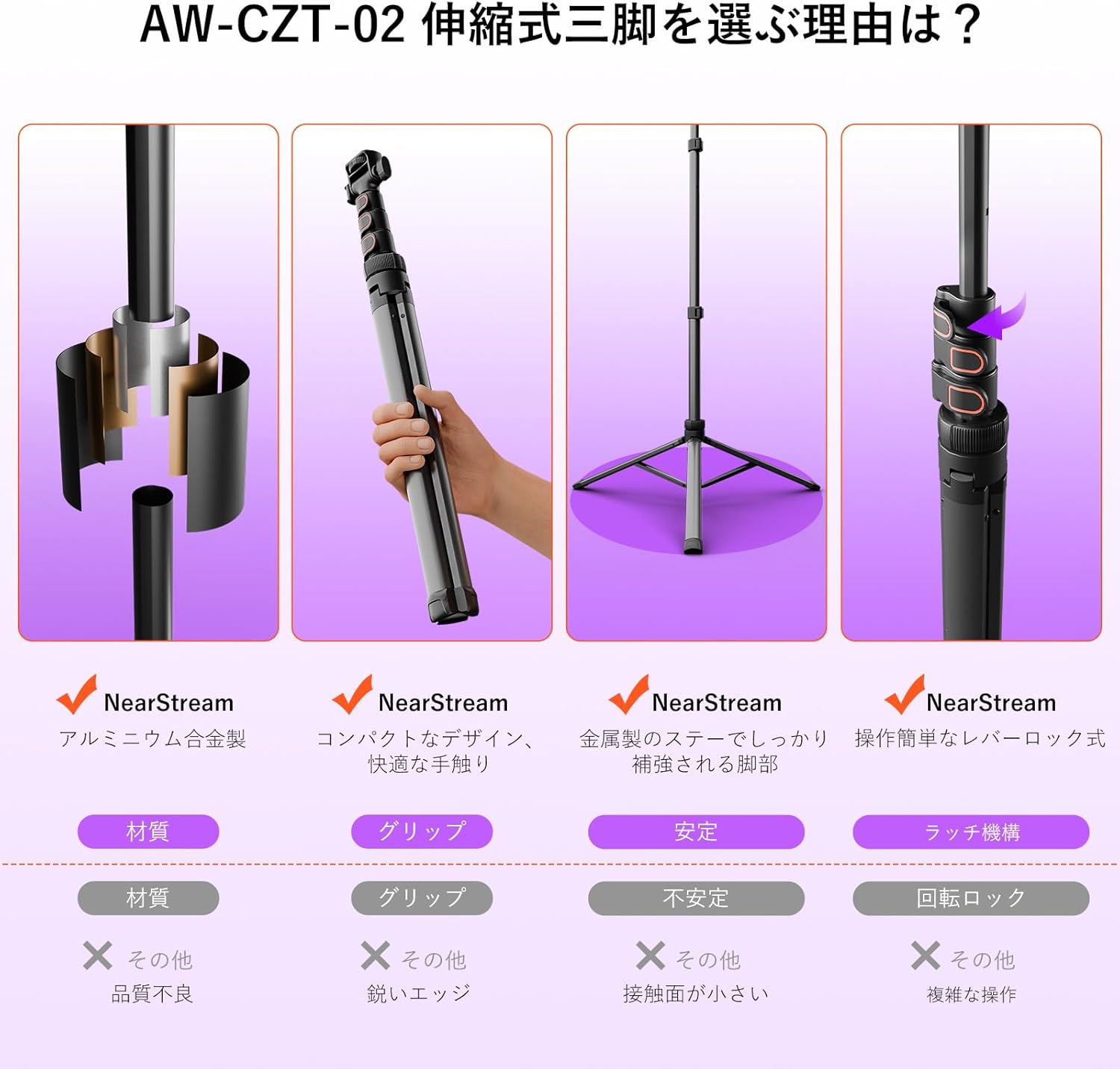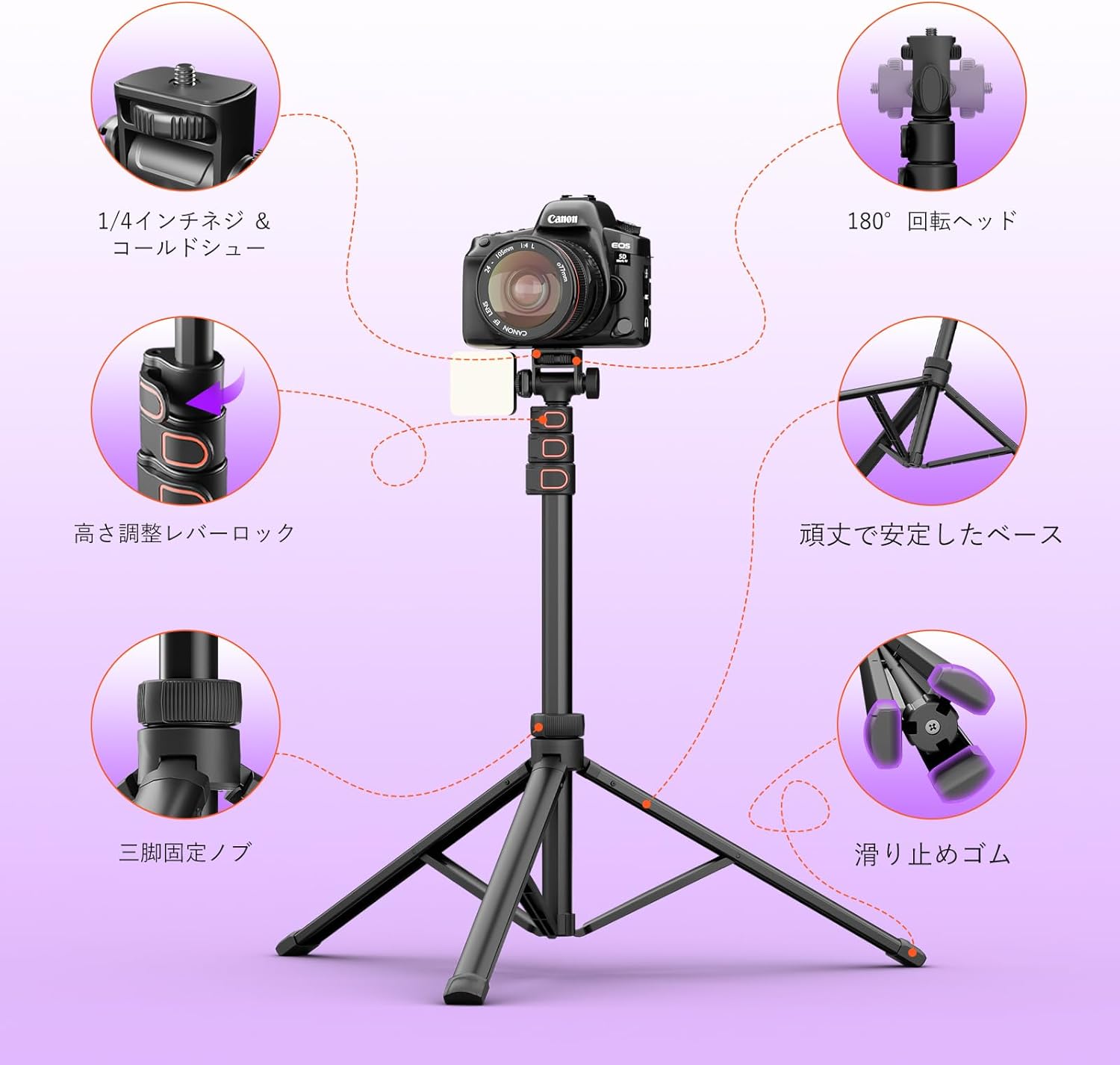 スマホ/マイク用 1/4インチネジ対応 高さ調整可能 4段伸縮 安定性 180°回転ヘッド