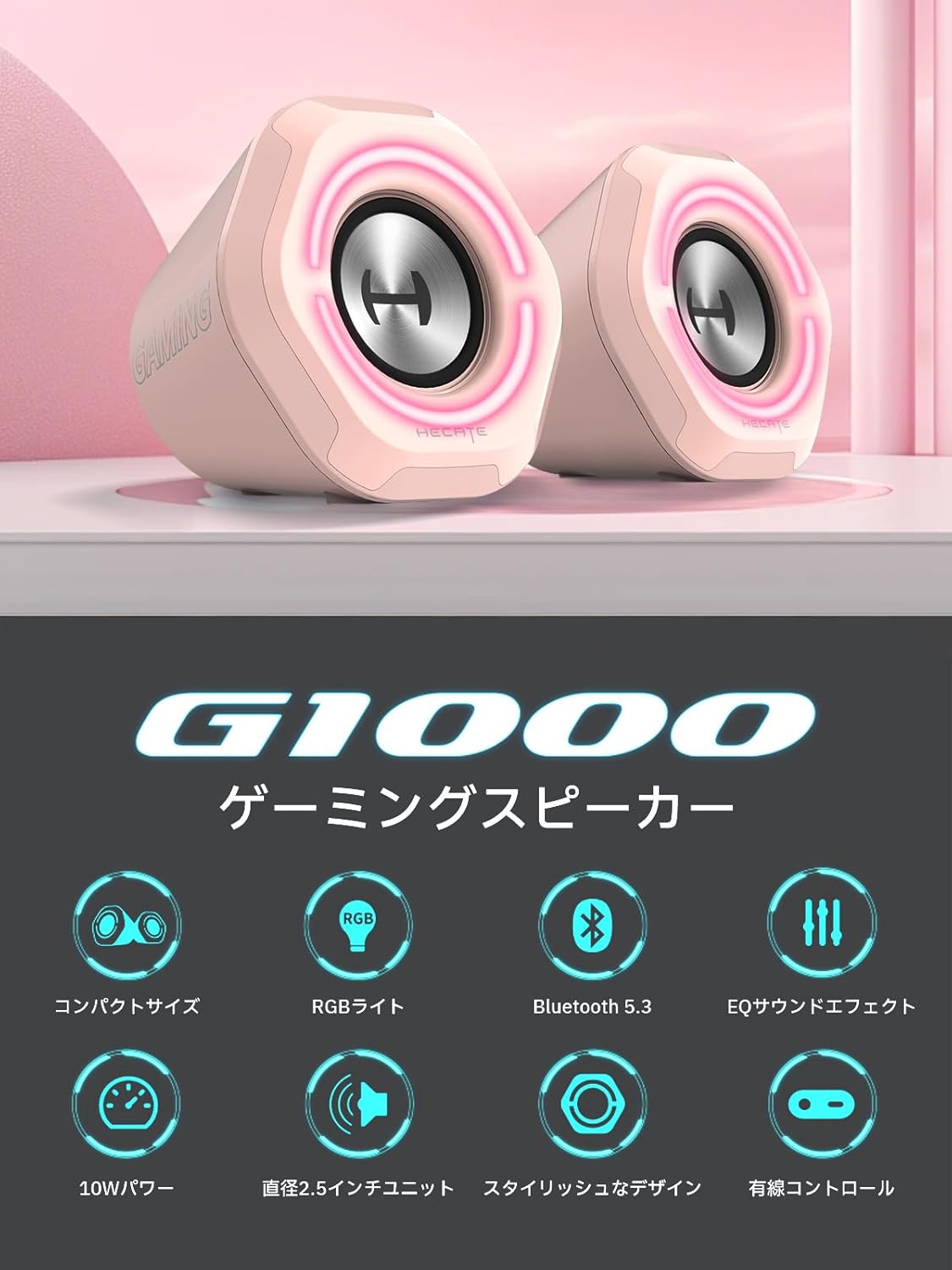 ゲーミング 小型 10W Bluetooth/USB/3.5mm AUX RGB 有線無線接続対応 音楽/ゲームモード対応