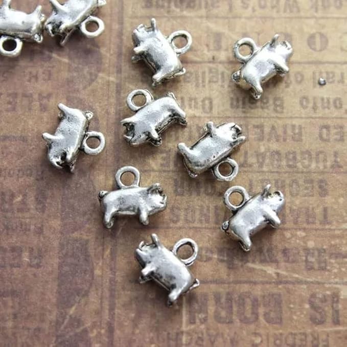 両面 3D 10 x 9 mm & ヘンチャーム チキンペンダント アンティーク シルバートーン