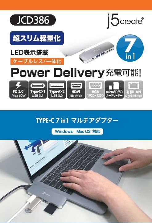 j5create USB-C 7in1 ミニ ドッキングステーション PC0440