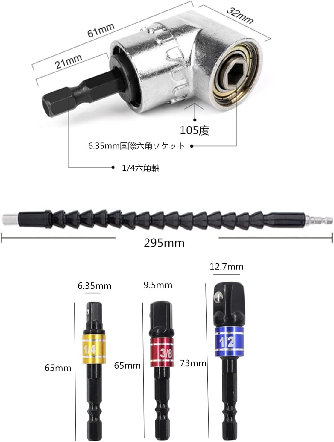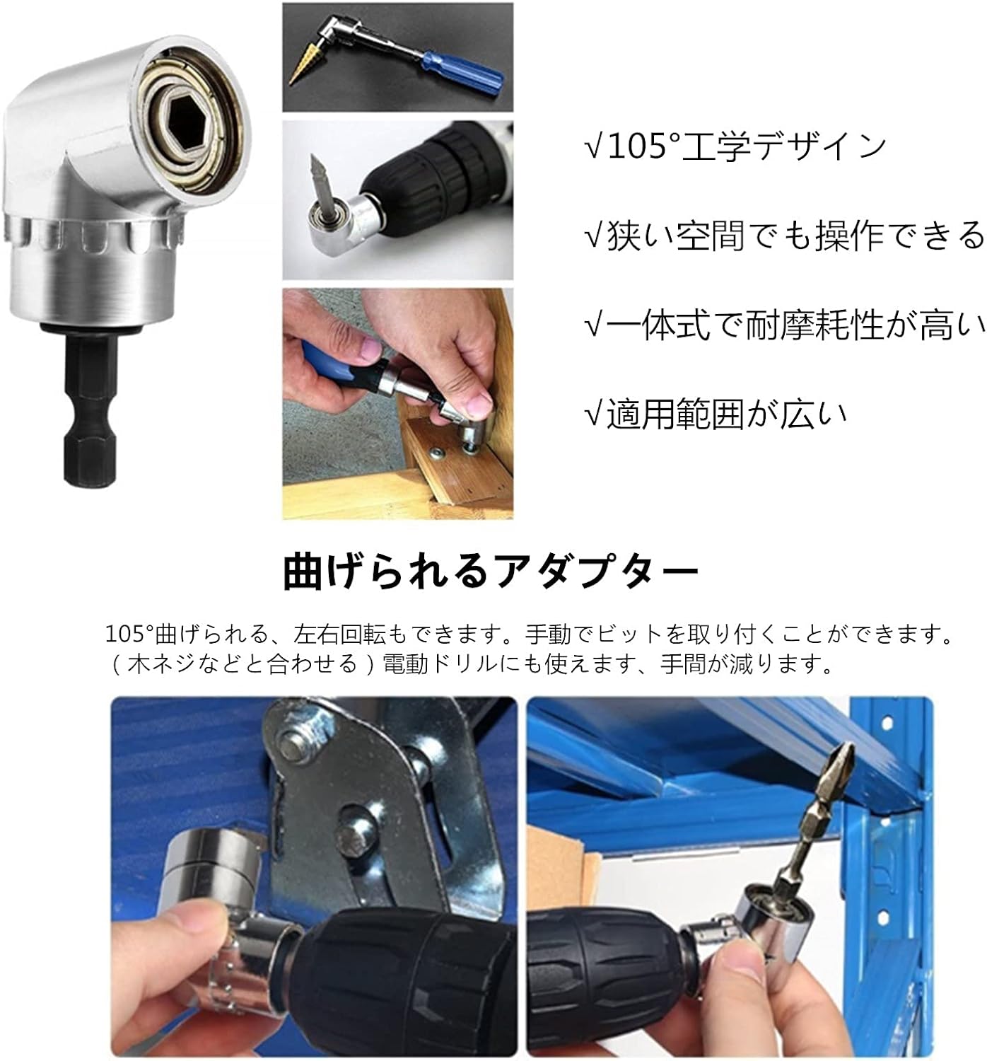 接続 工具 ツール ネジ締め 穴あけ ソケットアダプター 直角工具