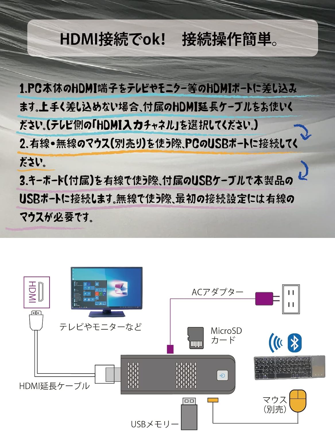 Windows11 4GB+64GB スティックPC 携帯用ポーチ付き HDMI延長ケーブル付き