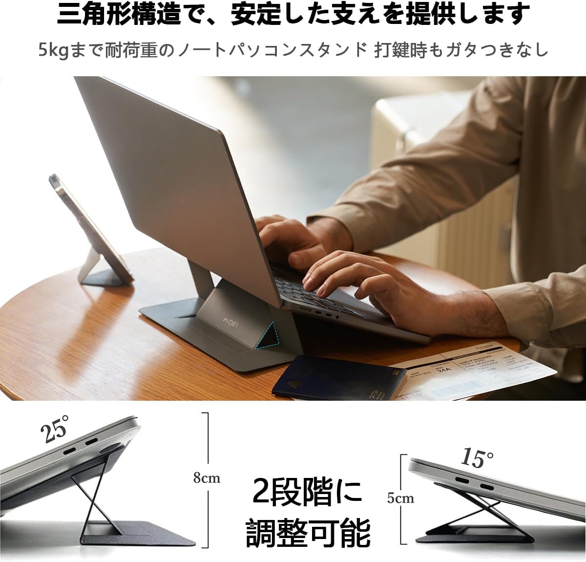 2段階に調整でき 粘着式 MacBook対応 耐久性向上 放熱効果 瞬時セットアップ