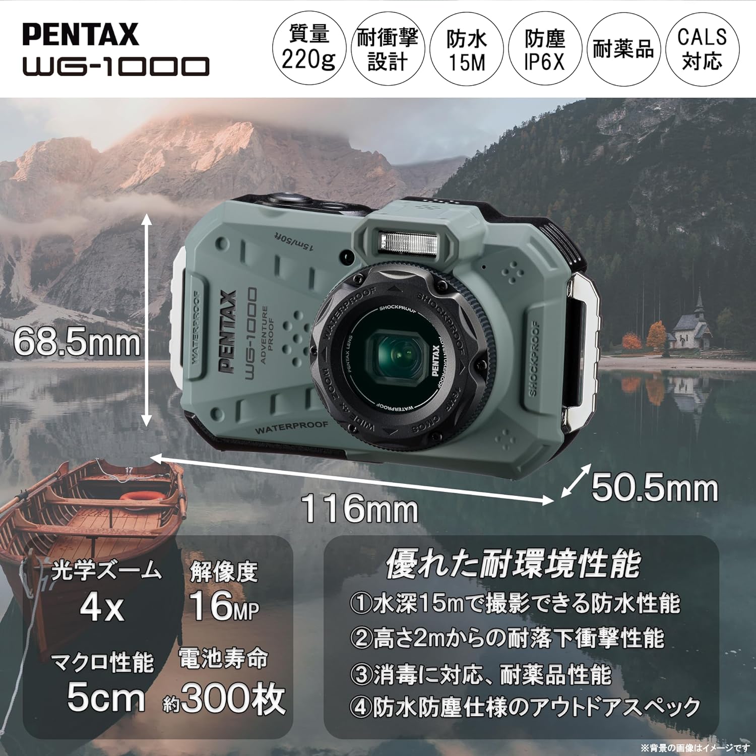15m防水 (連続1時間) 2m耐衝撃 防塵仕様 2162