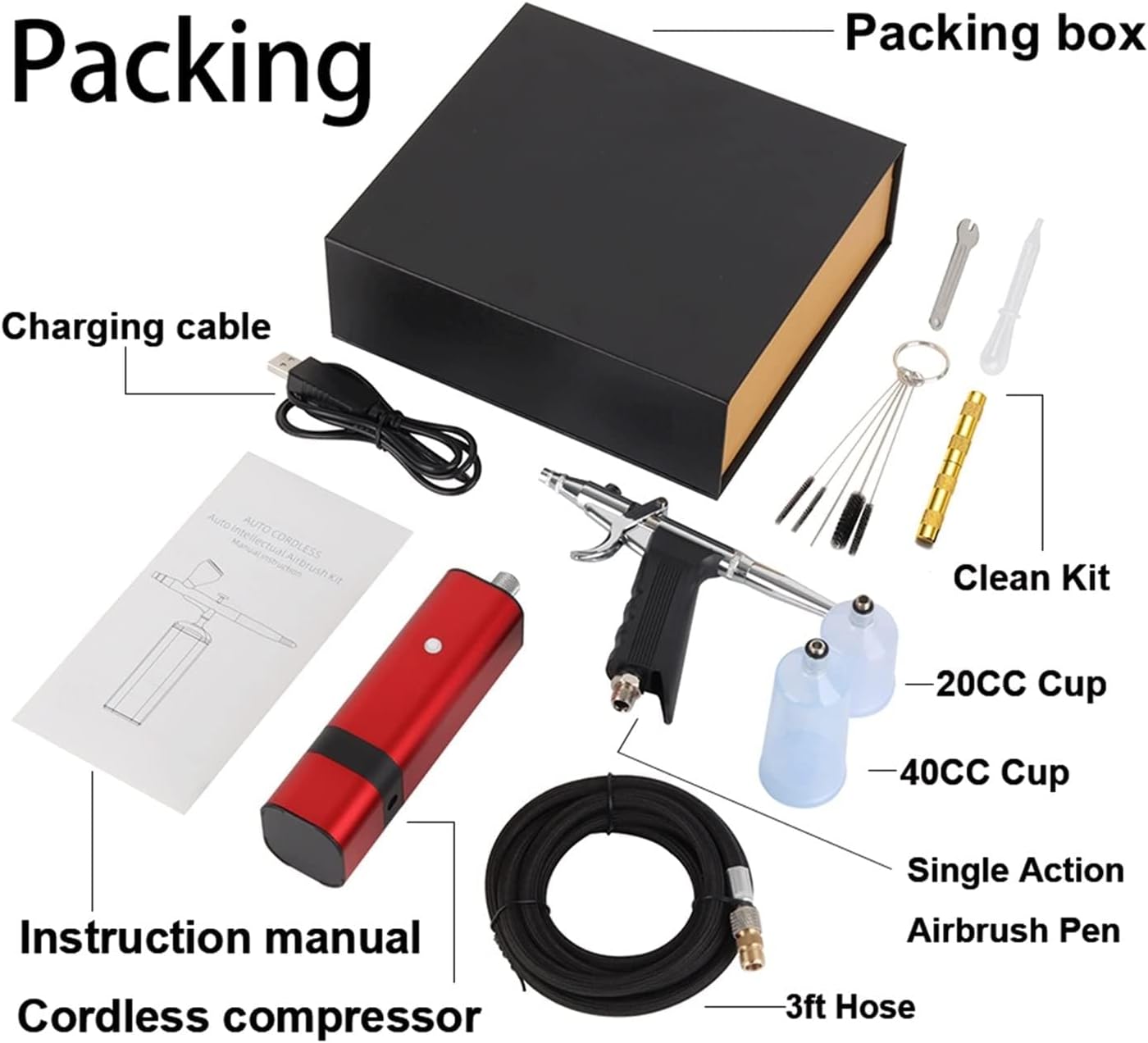 重力トリガータイプのスプレーガンの充電式エアブラシキット