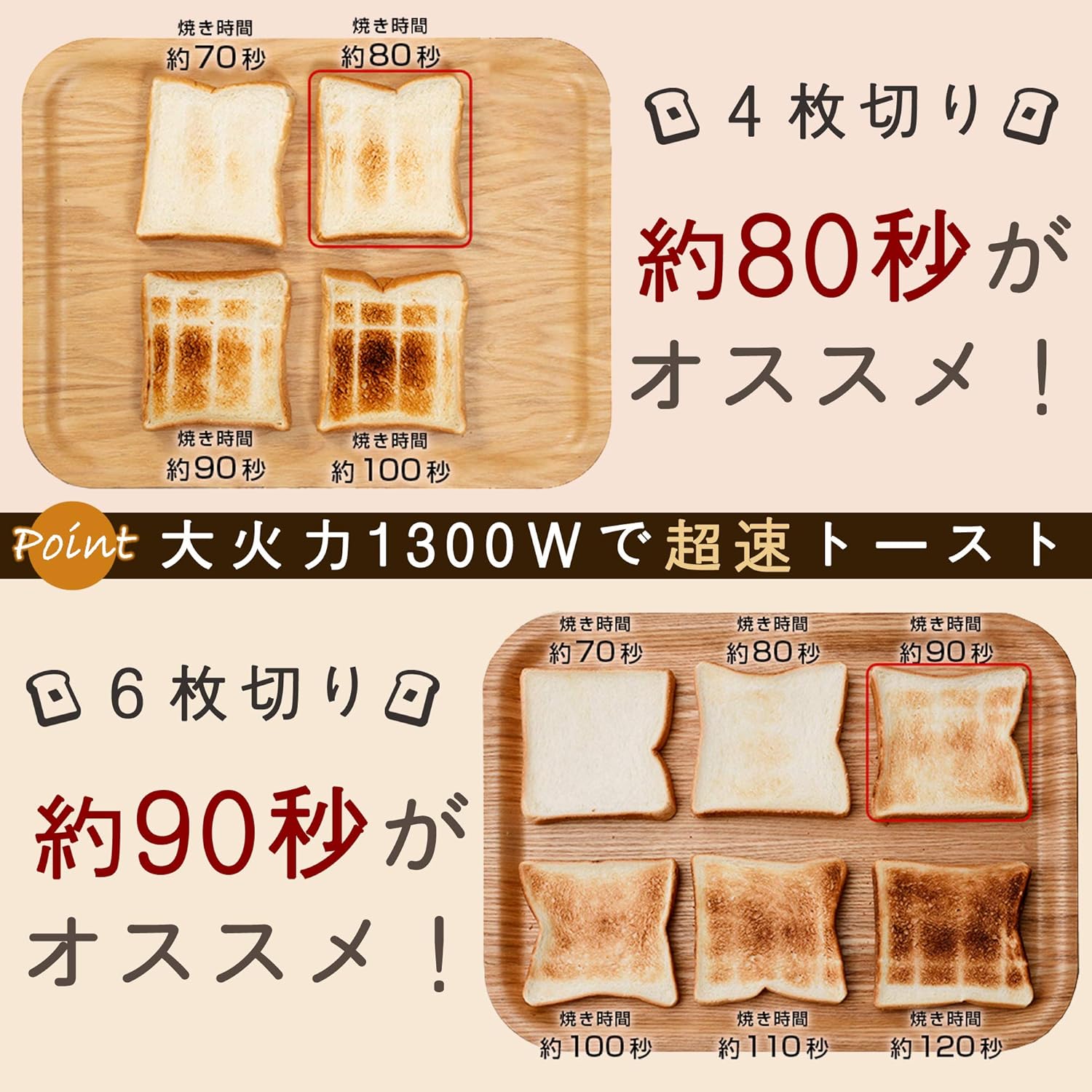 6段階焼色調節 2枚焼き 4~8枚切り 冷凍パン対応 投入口用カバー付き
