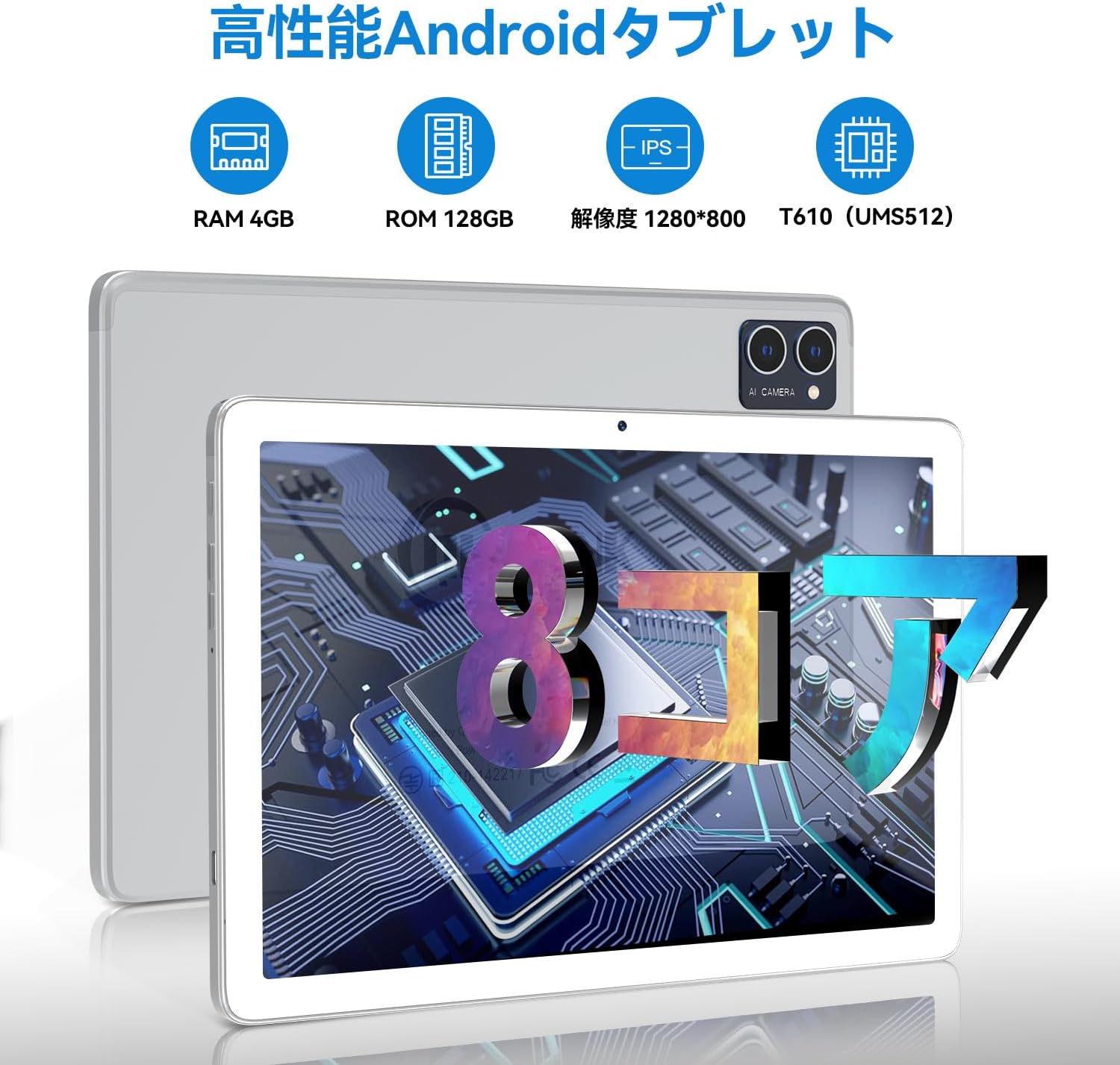 8コアCPU、10インチタブレット、ROM128GB+1TB拡張可能タブレット、5G/2.4GHz Android WIFI