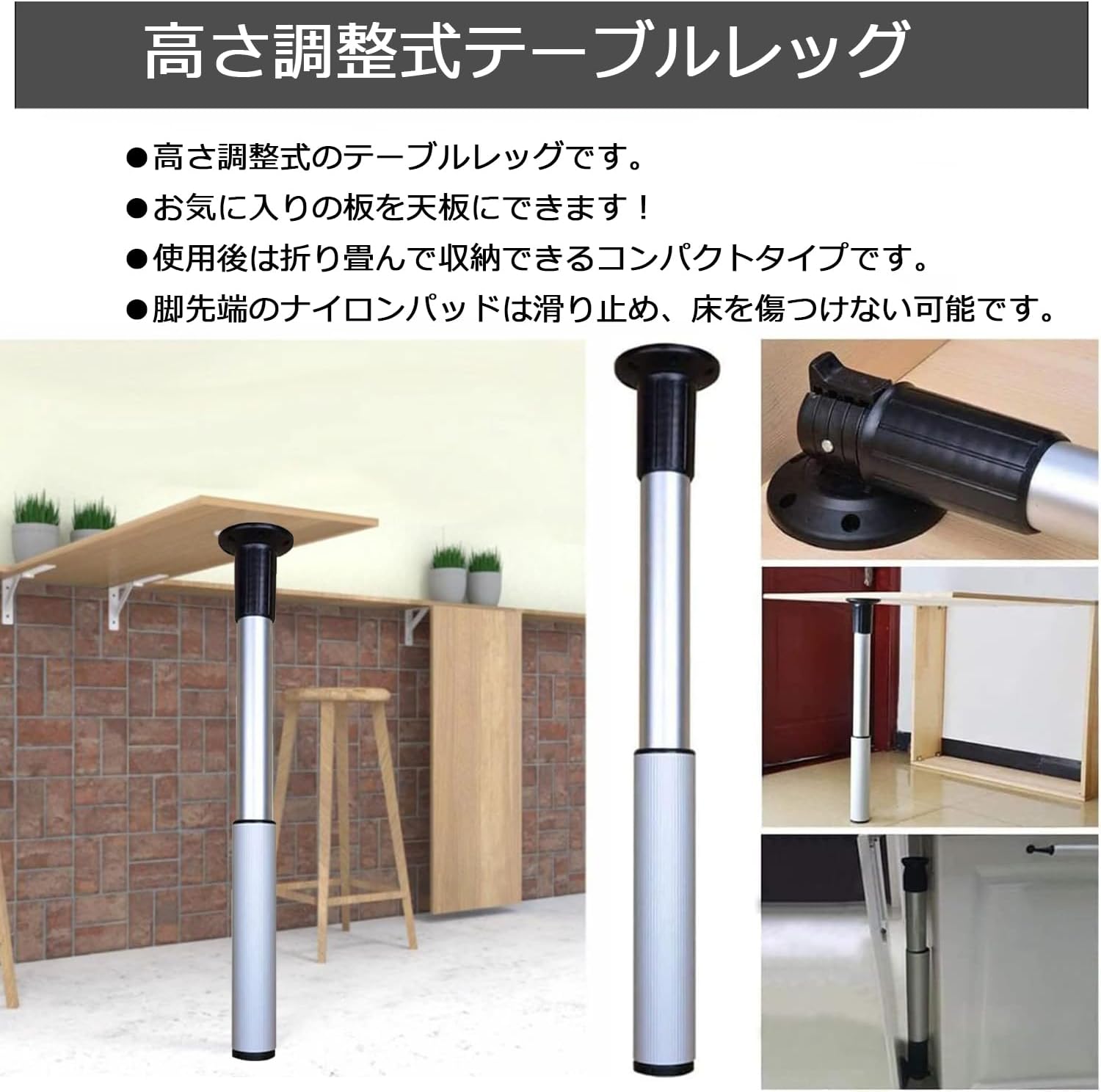 テーブル脚 金具 高さ調整式 カウンターテーブルレッグ