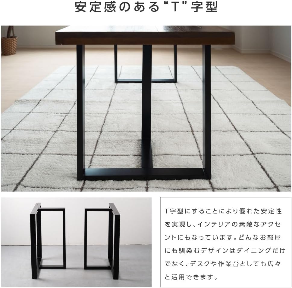 diy ダイニング 日本製 W57XH65XD32cm 2本1組 ブラック T型 スチール