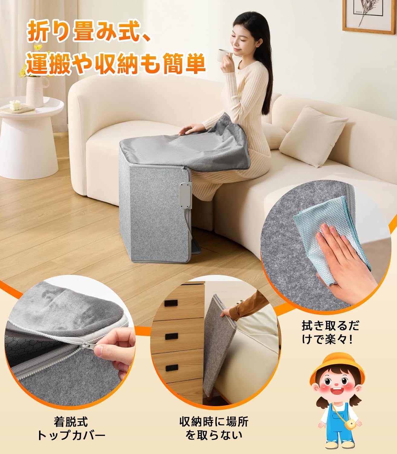 足元ヒーター デスク下 遠赤外線 折りたたみ デスクヒーター 195W 3段階温度調整 電気足温器 傾倒自動オフ&二重過熱保護