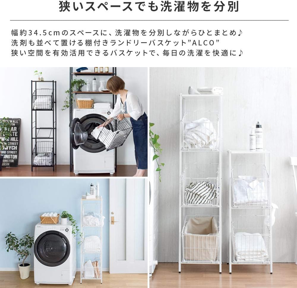 ランドリー収納 棚付きランドリーバスケット ALCO(アルコ) 3段タイプ