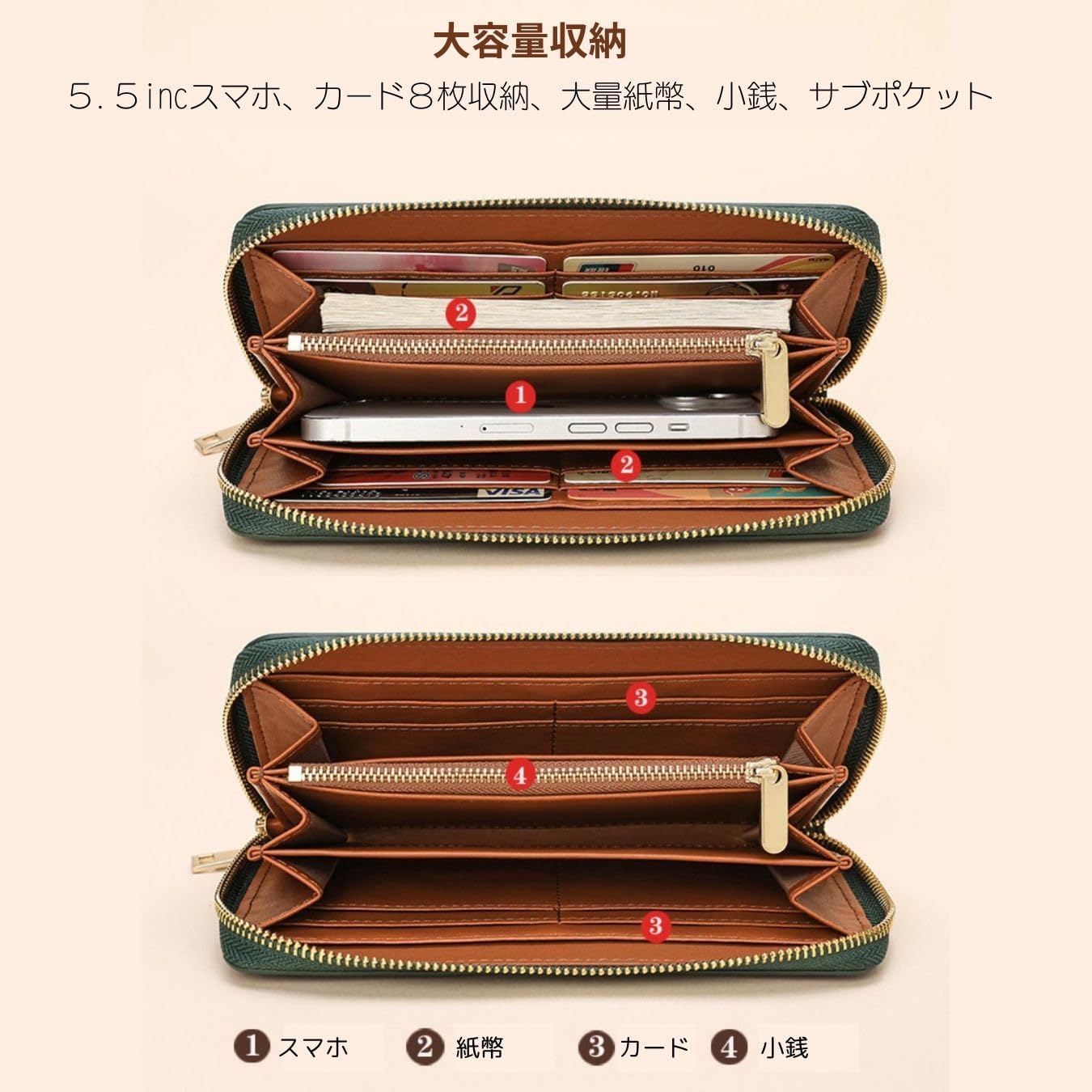 ウンドファスナー ユニセックス 大容量 牛革 艶あり 札入れ 小銭入れ