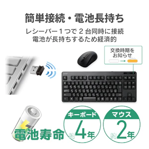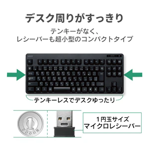 エレコム2.4GHzワイヤレス キーボード メンブレン式 コンパクトサイズ マウス付(ブラック)TK-FDM105MBK LF0154
