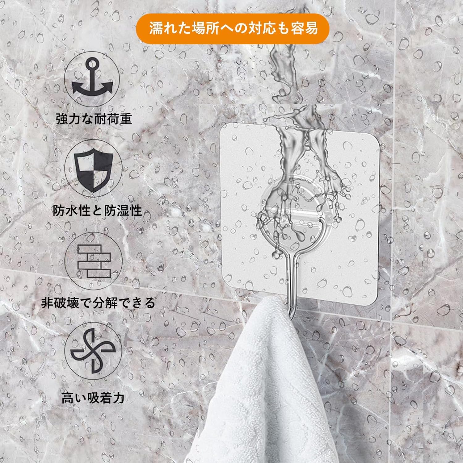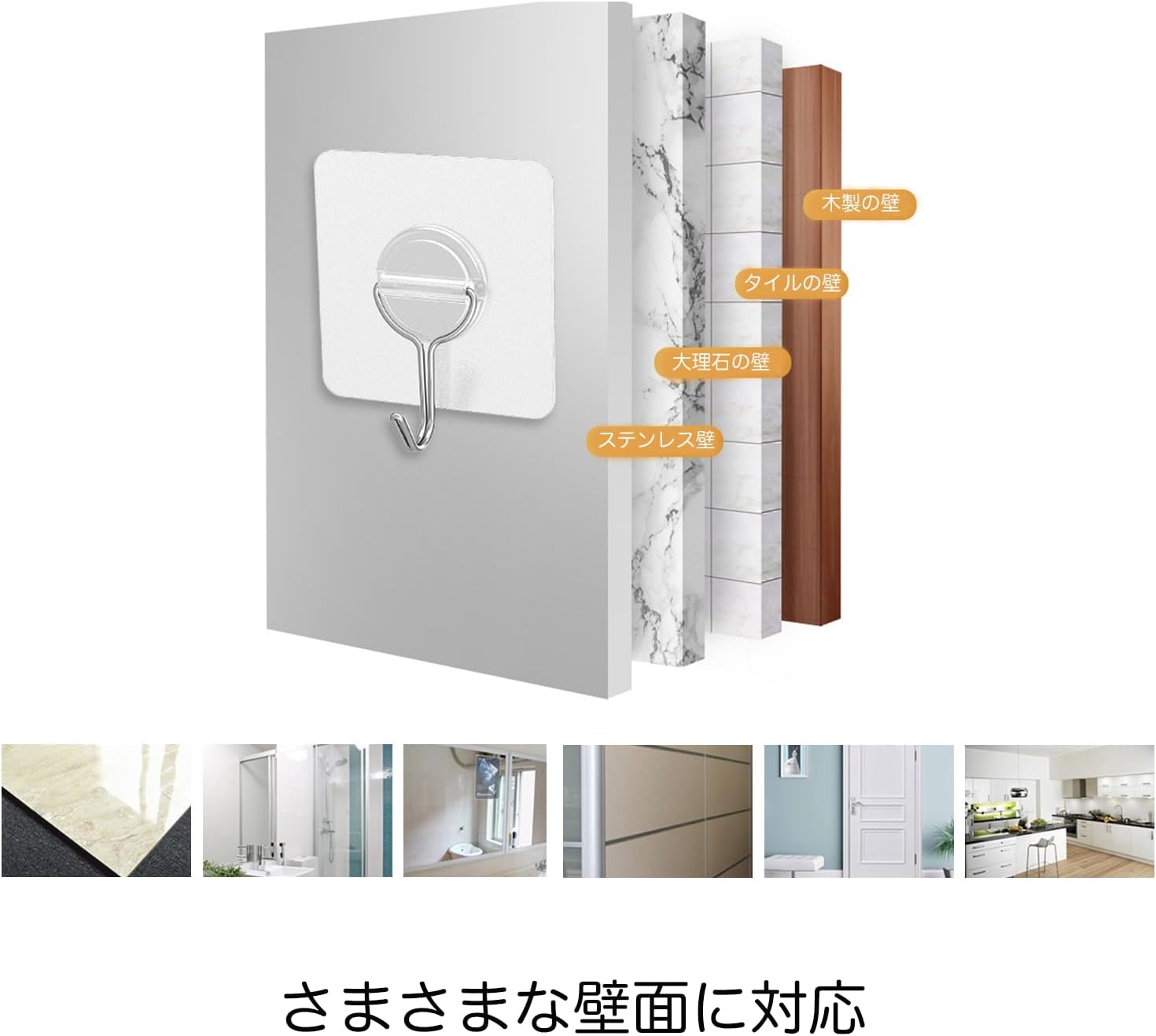 壁傷つけない 強力粘着 透明なフック 16枚セット 防水フック