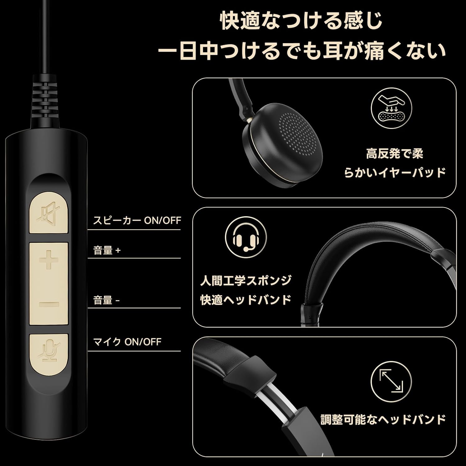 USB/Type-C/3.5mm 両耳 新型ノイズキャンセリングマイク付き 有線コントロール