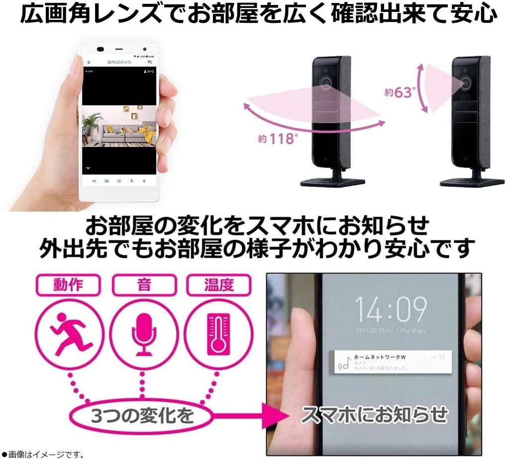 屋内HDカメラ 1080p 広画角レンズ タイムラプス搭載 オーディオ&モーション