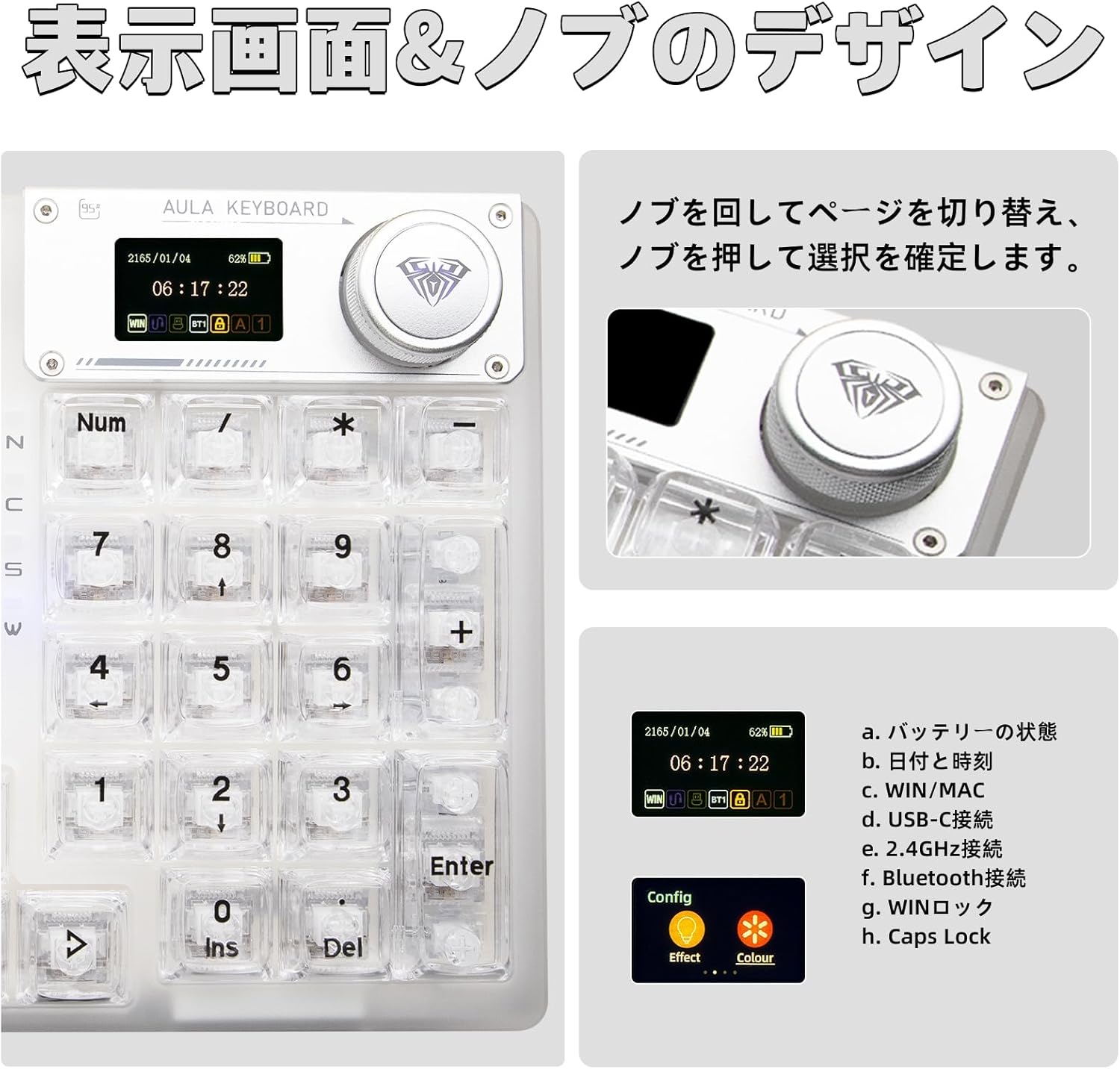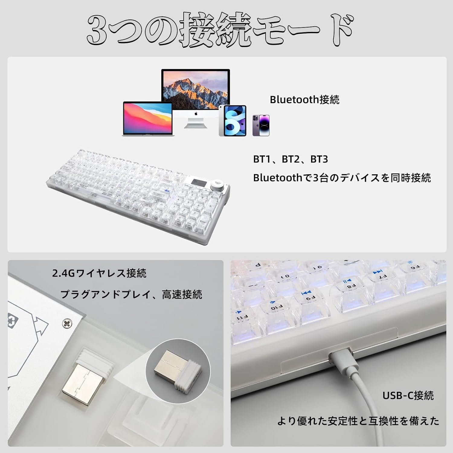 透明キーボード ホットスワップメカニカルキーボード テンキーキーボード ワイヤレス 透明キーキャップ