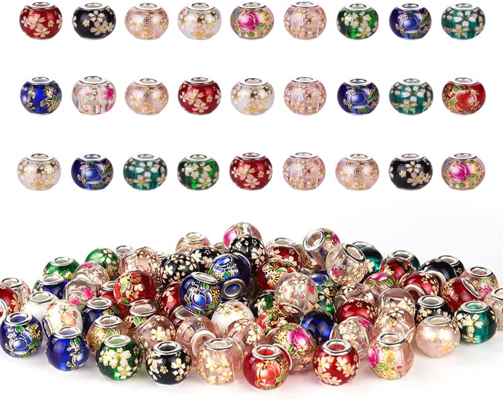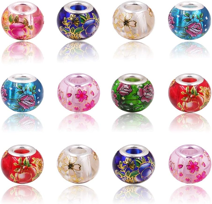 AIPRIDY 50 Pcs 15 x 11 mm Murano大穴銀黄銅芯ガラス