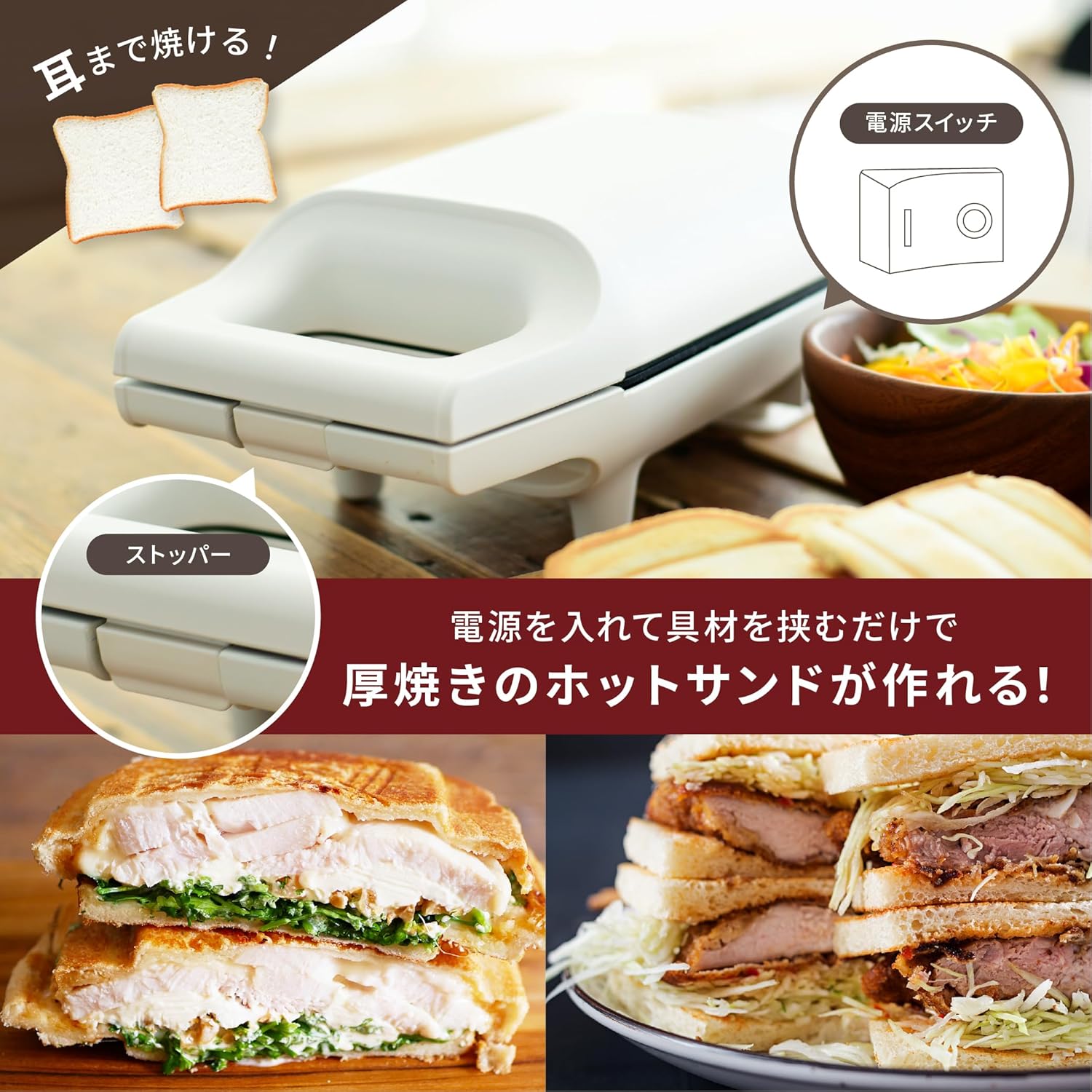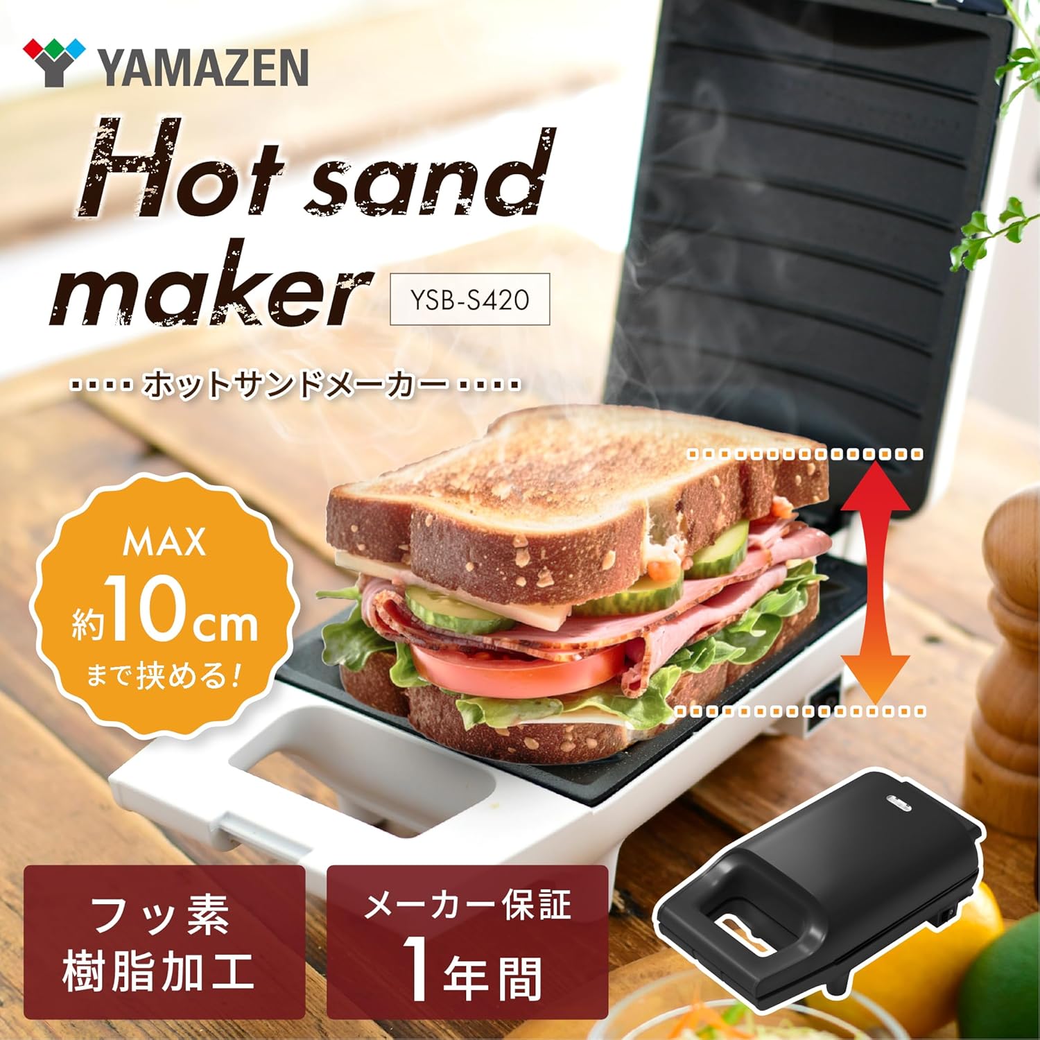 [山善] 具だくさん 耳付きで焼ける ホットサンドメーカー