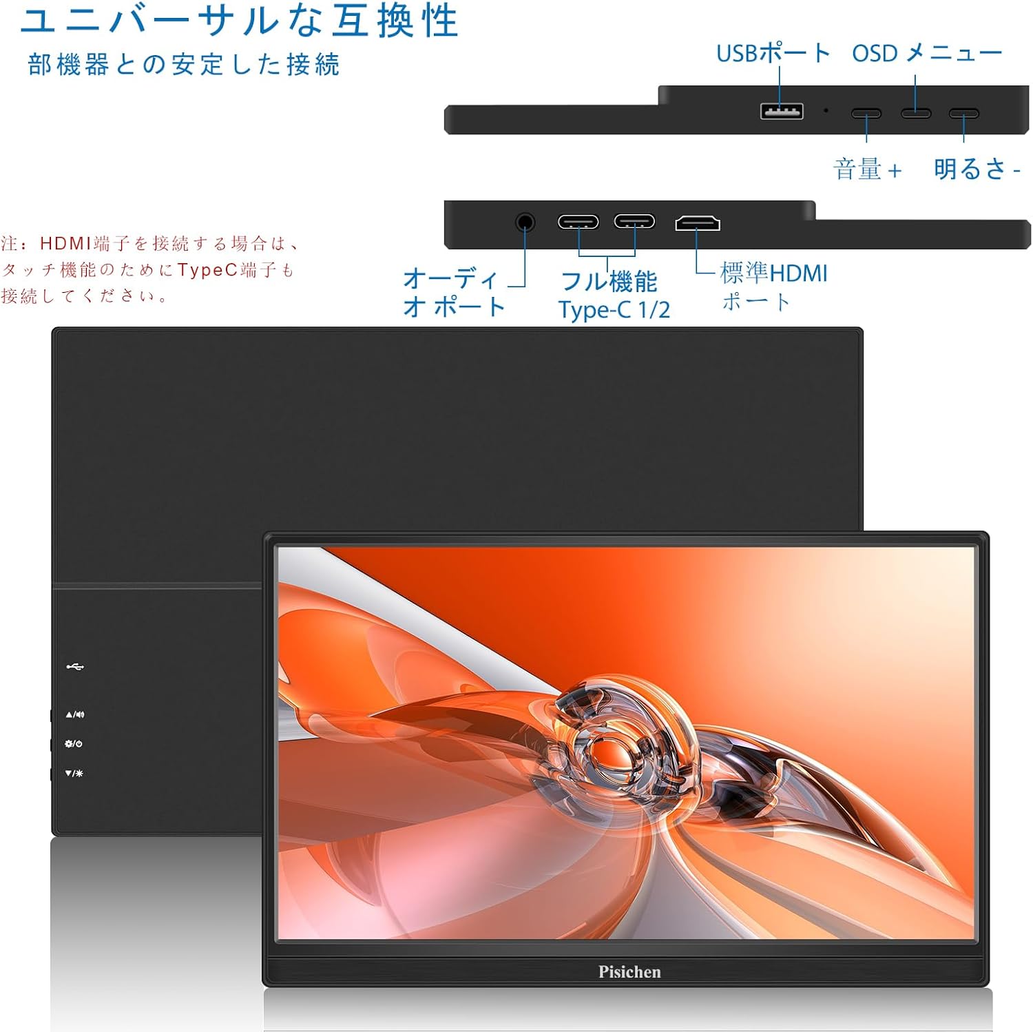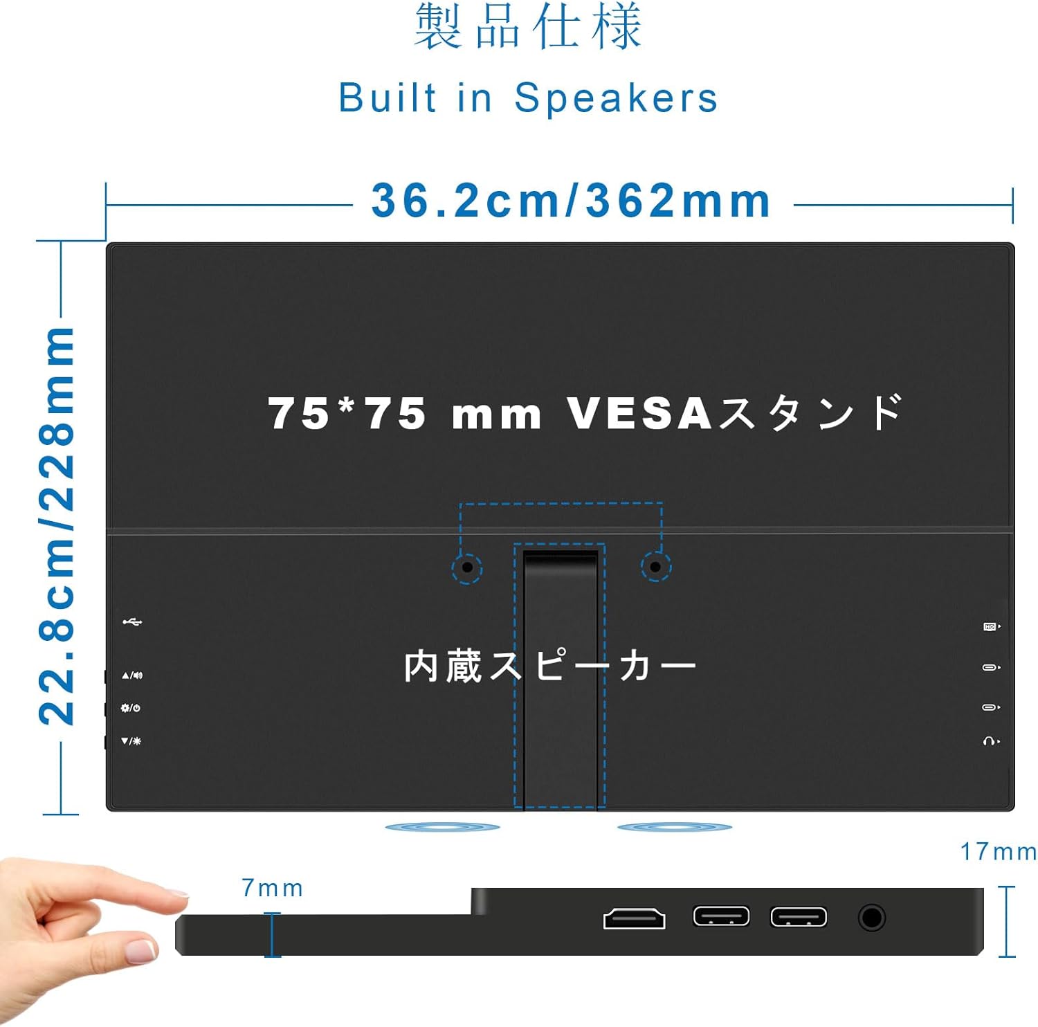15.6インチHDMI USB Type-CポータブルモニターFHD 1920x1080P IPSディスプレイHDRアイケア