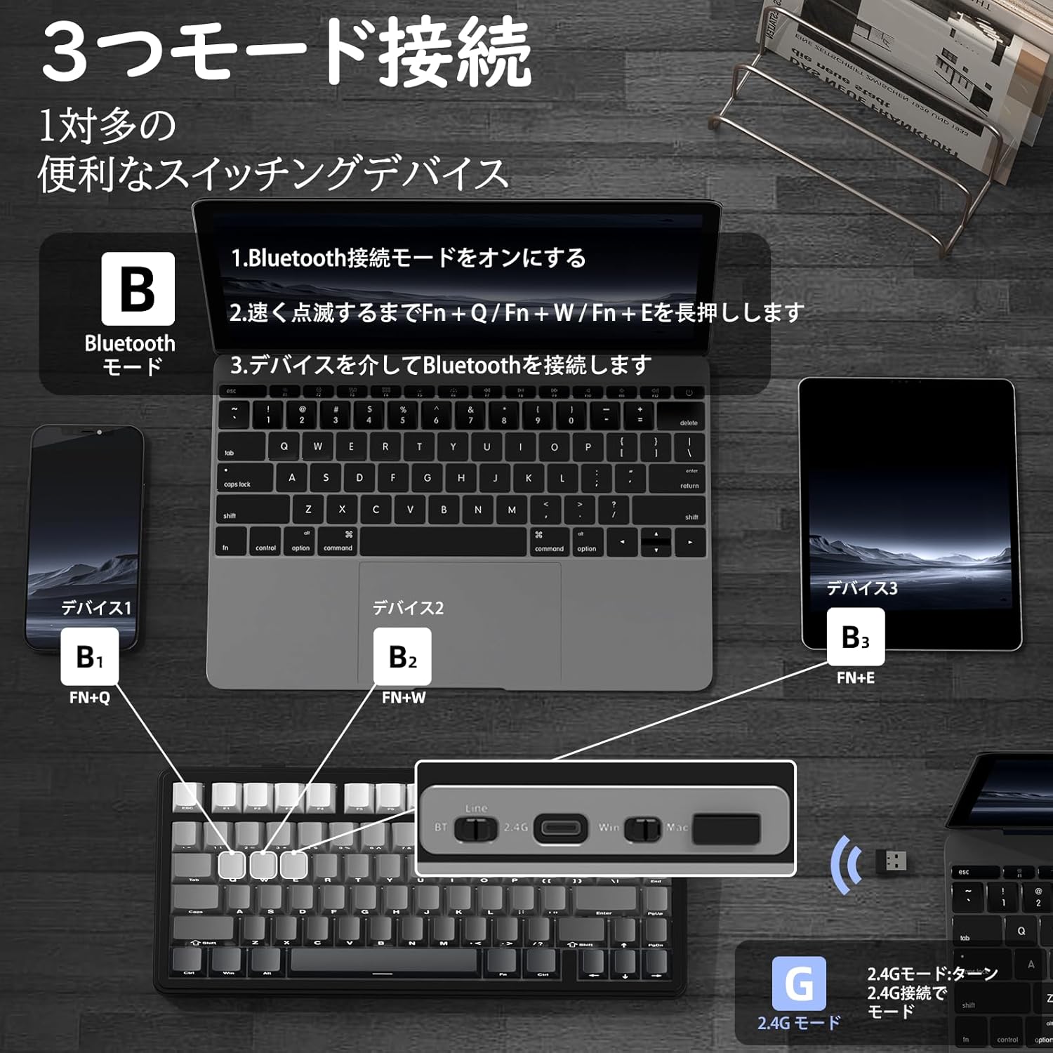 ノブ付き75%ワイヤレスゲームキーボード、PBT側プリントキーキャップ