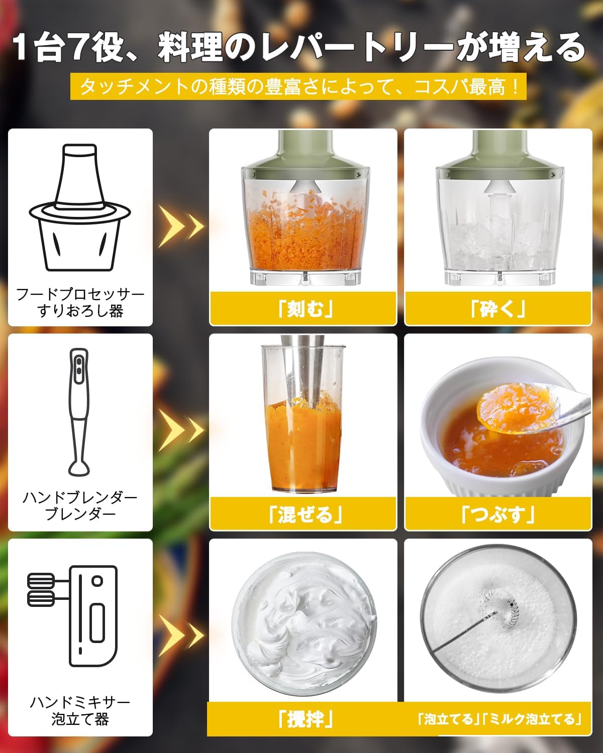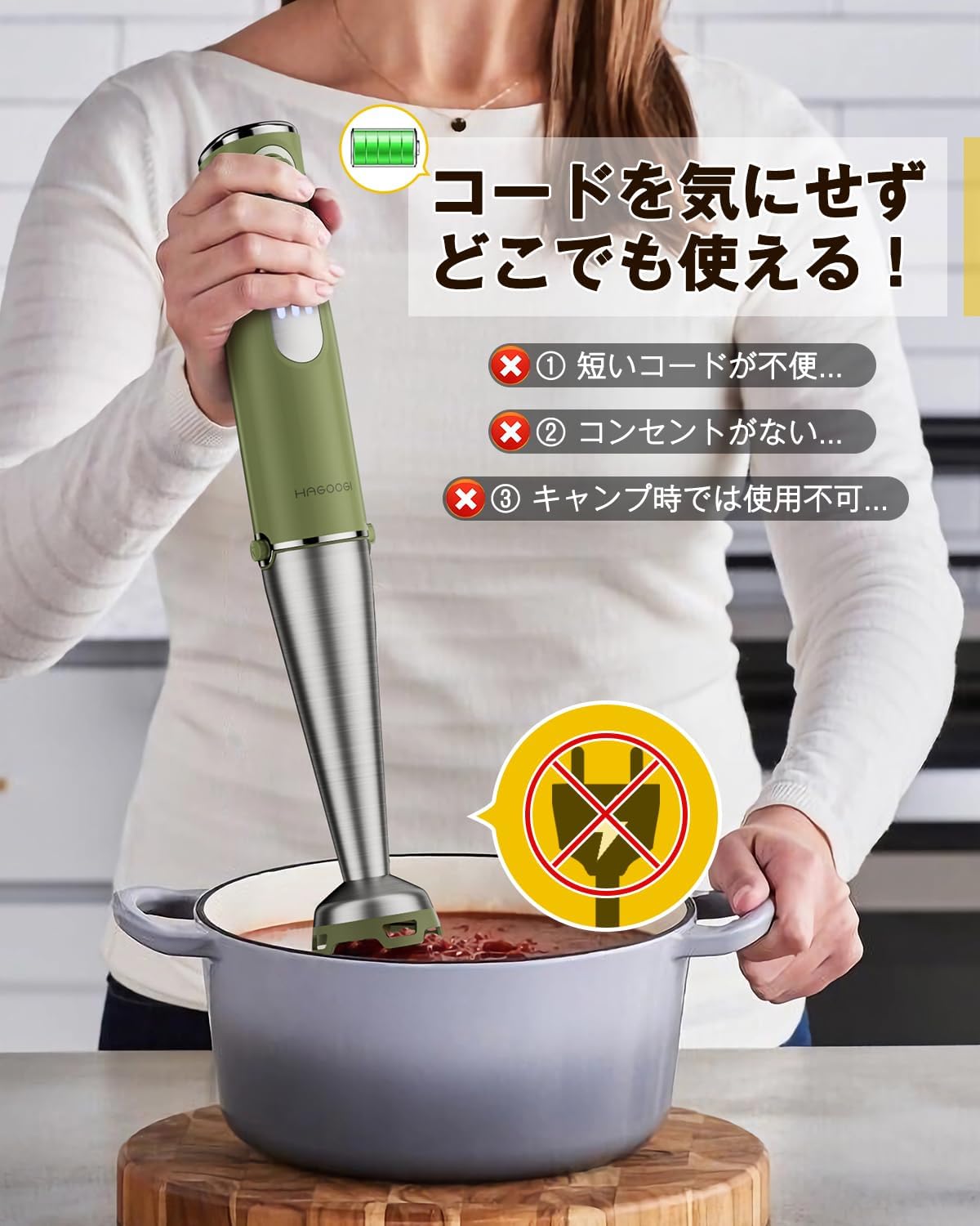 レンダー 充電式 無段階変速 ミキサー 鍋キズ防止 氷も砕ける フードプロセッサー