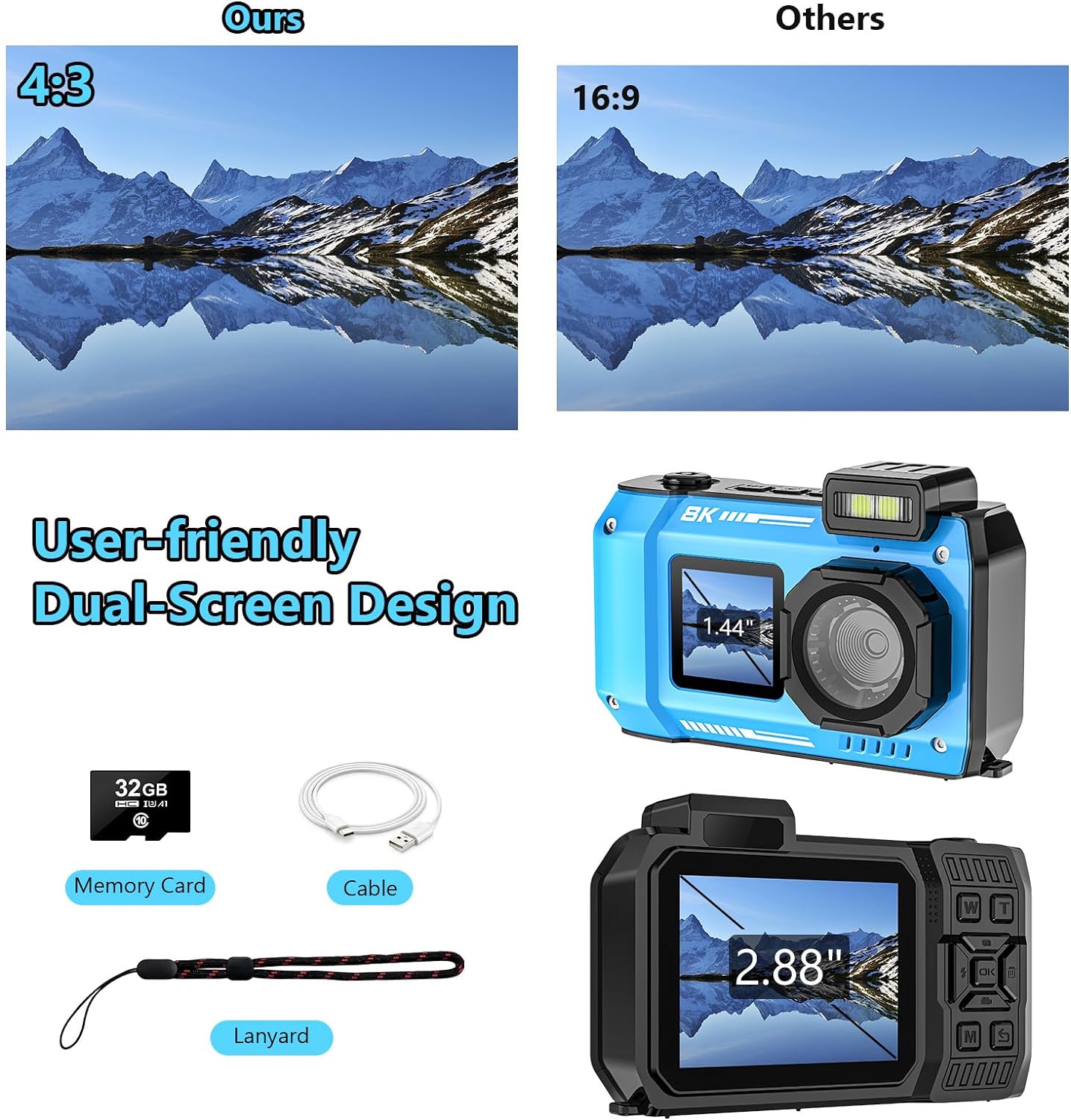 33フィート オートフォーカス 70MP 頑丈 防塵 耐衝撃 デジタルカメラ 防水カメラ