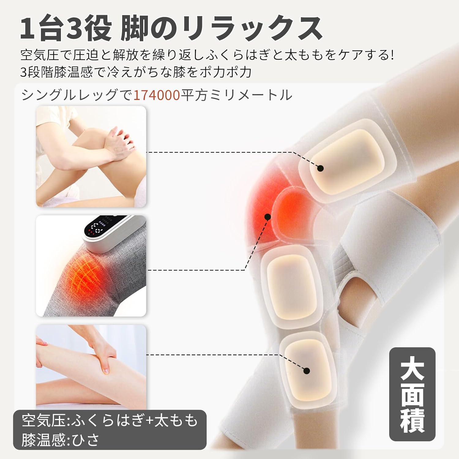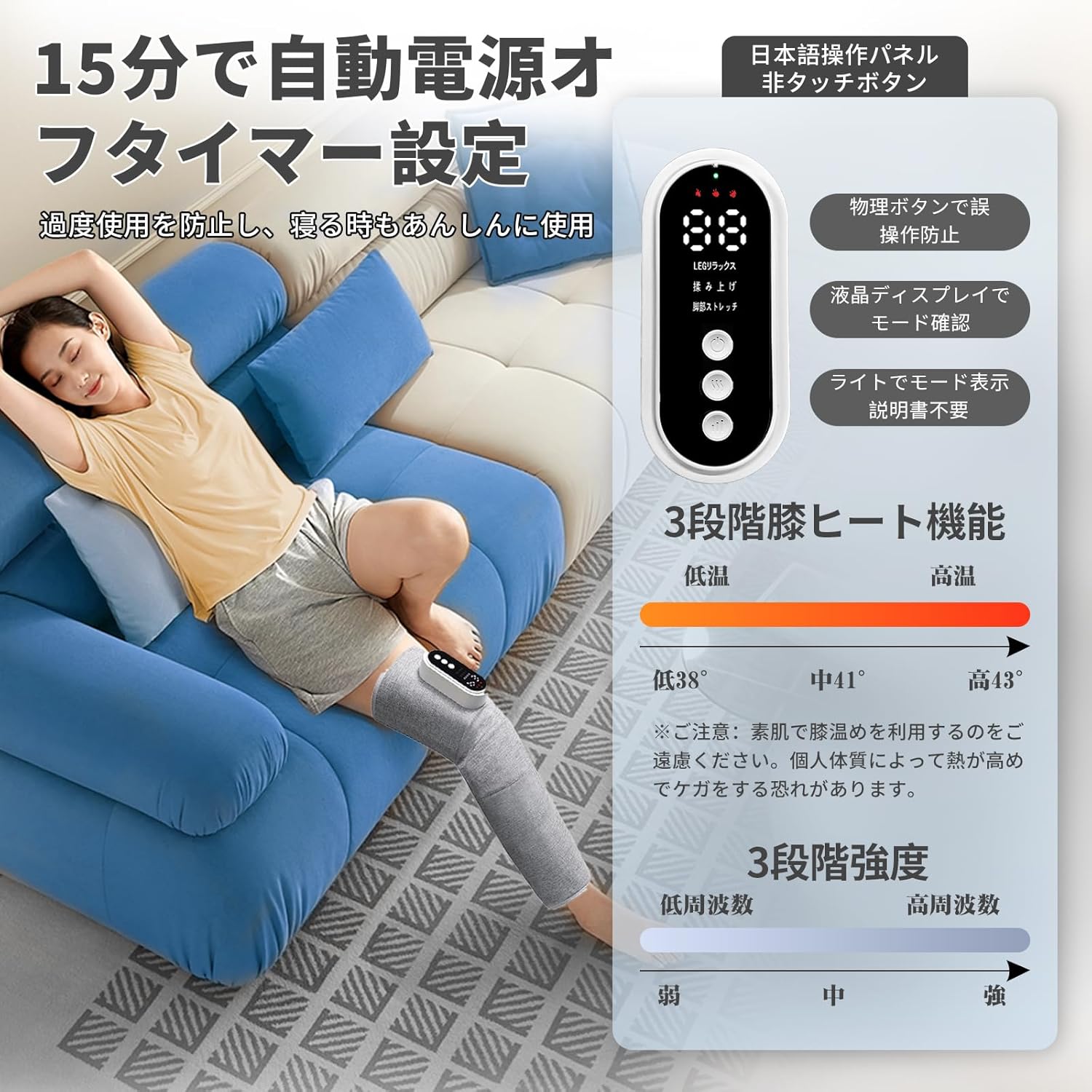 ふくらはぎに最適 足のリラックス無線ヒーター 3つモード 3段階強弱調節 3段階温熱 コードレス 充電式 15分タイマ 貼り付け サイズ調整可