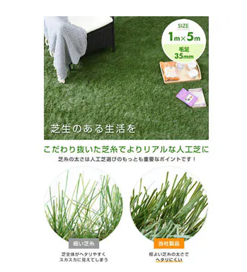 こまめな芝刈り、水遣り、雑草取りなど面倒なメンテナンスが不要なロールタイプのリアル人工芝。