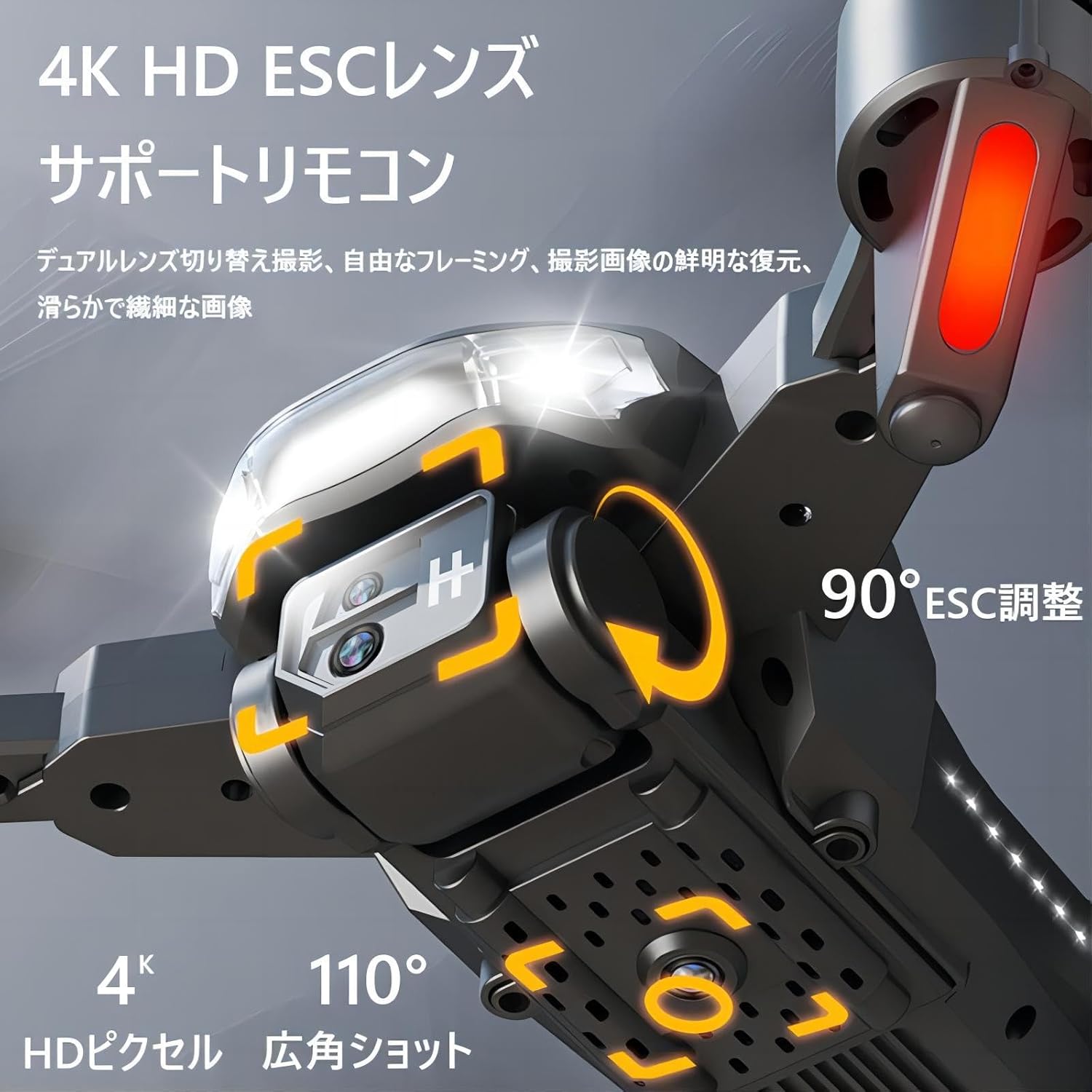 90°電動調整可能 4K HDカメラ WiFi FPVリアルタイム 小型 折り畳み式 初心者向け