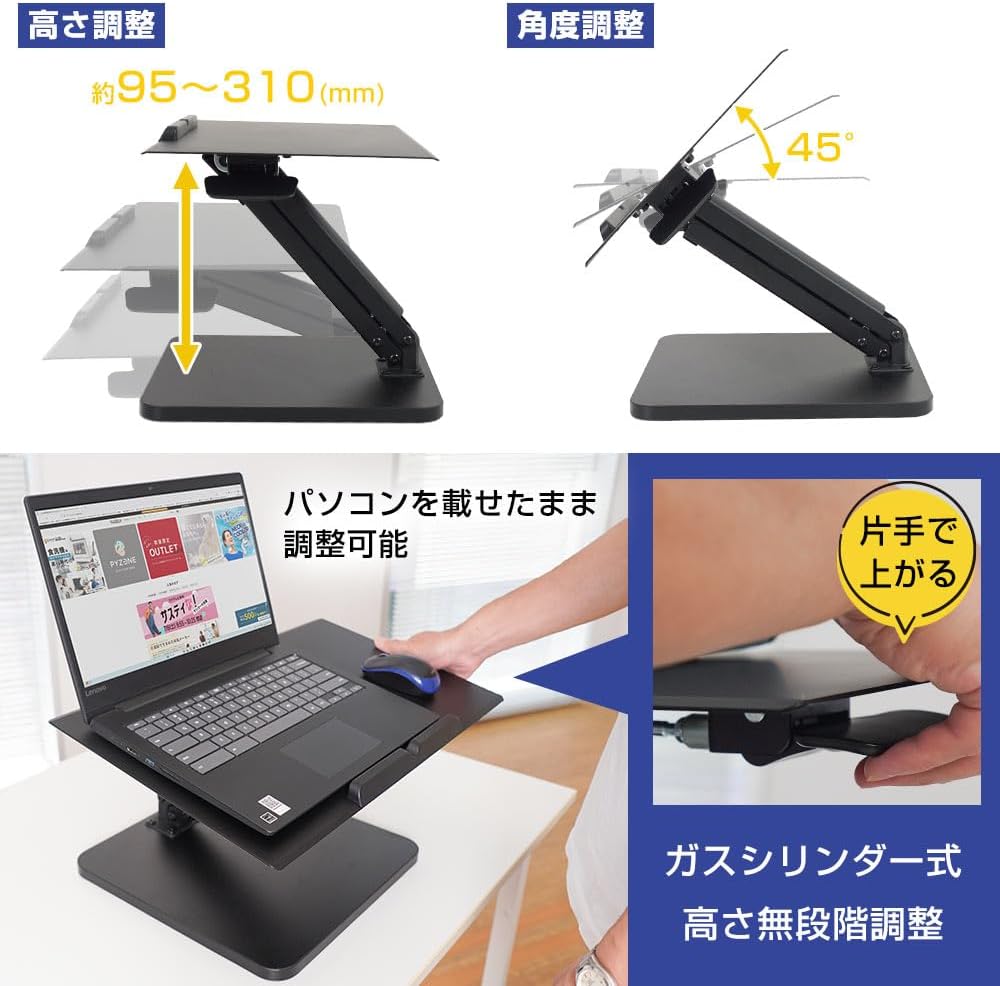 THANKO ノートパソコン 折りたたみ 省スペース 昇降 揺れない 片手で簡単昇降