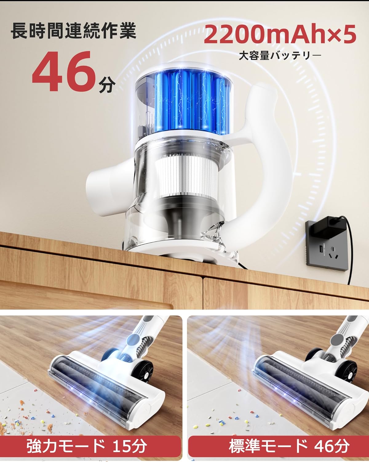 46分間連続稼働 スティック掃除機 軽量 10段伸縮パイプ ハンディクリーナー 2way仕様