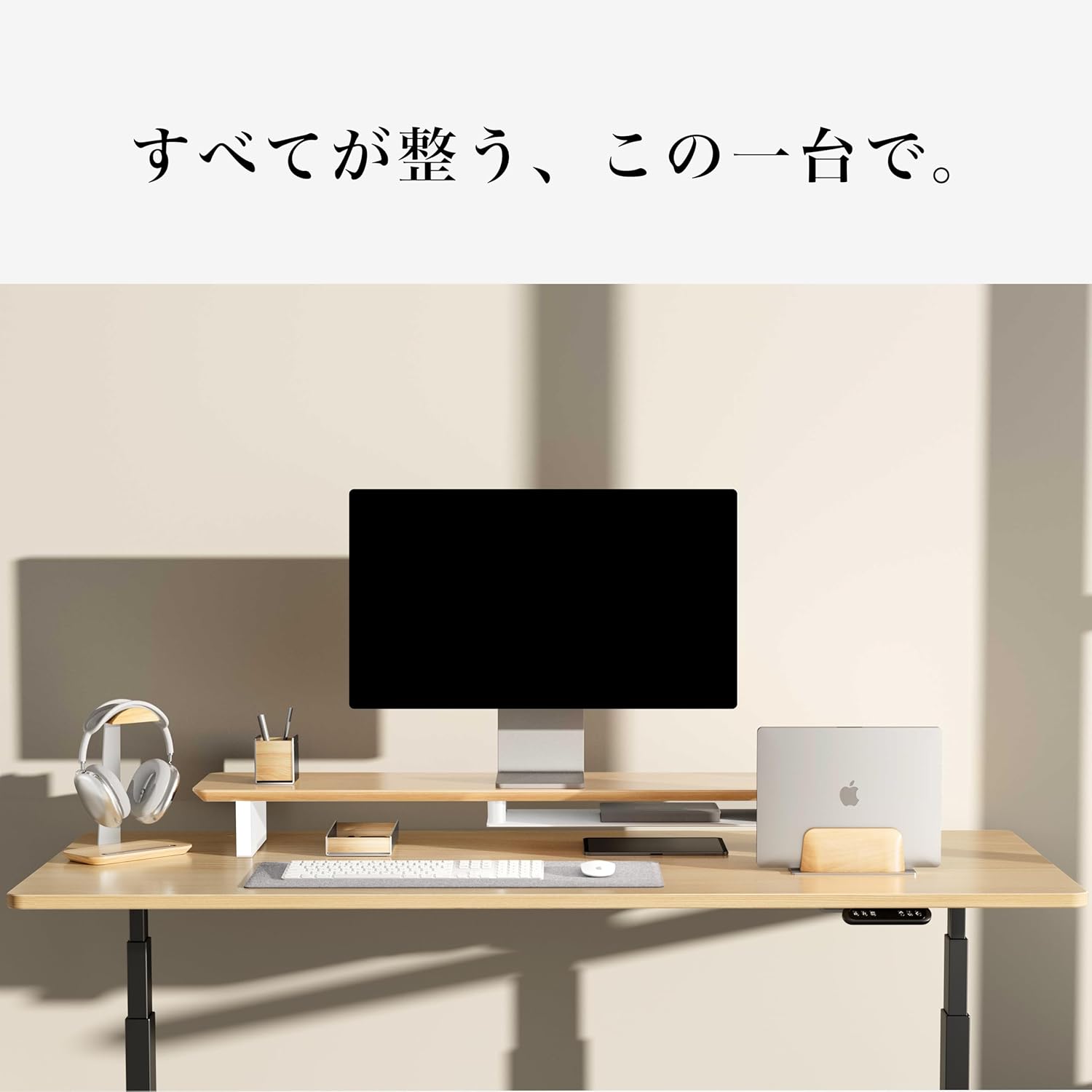 amesoba 木製 モニタースタンド 卓上 デスクシェルフ (天板:ホワイトオーク/パーツ:ホワイト)