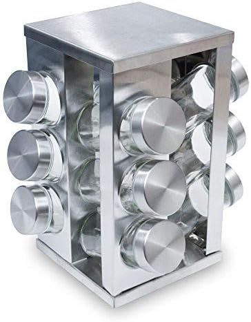 回転式スパイスボトルホルダー 取り出しやすい!見やすい!収納ラック キッチン用品 調味料ビン12個 スパイス収納 プロ仕様 おしゃれ ステンレス スタイリッシュ 上品 便利グッズ 主婦 お役立ちグッズ 料理 クッキング 台所 インテリア 雑貨 新生活