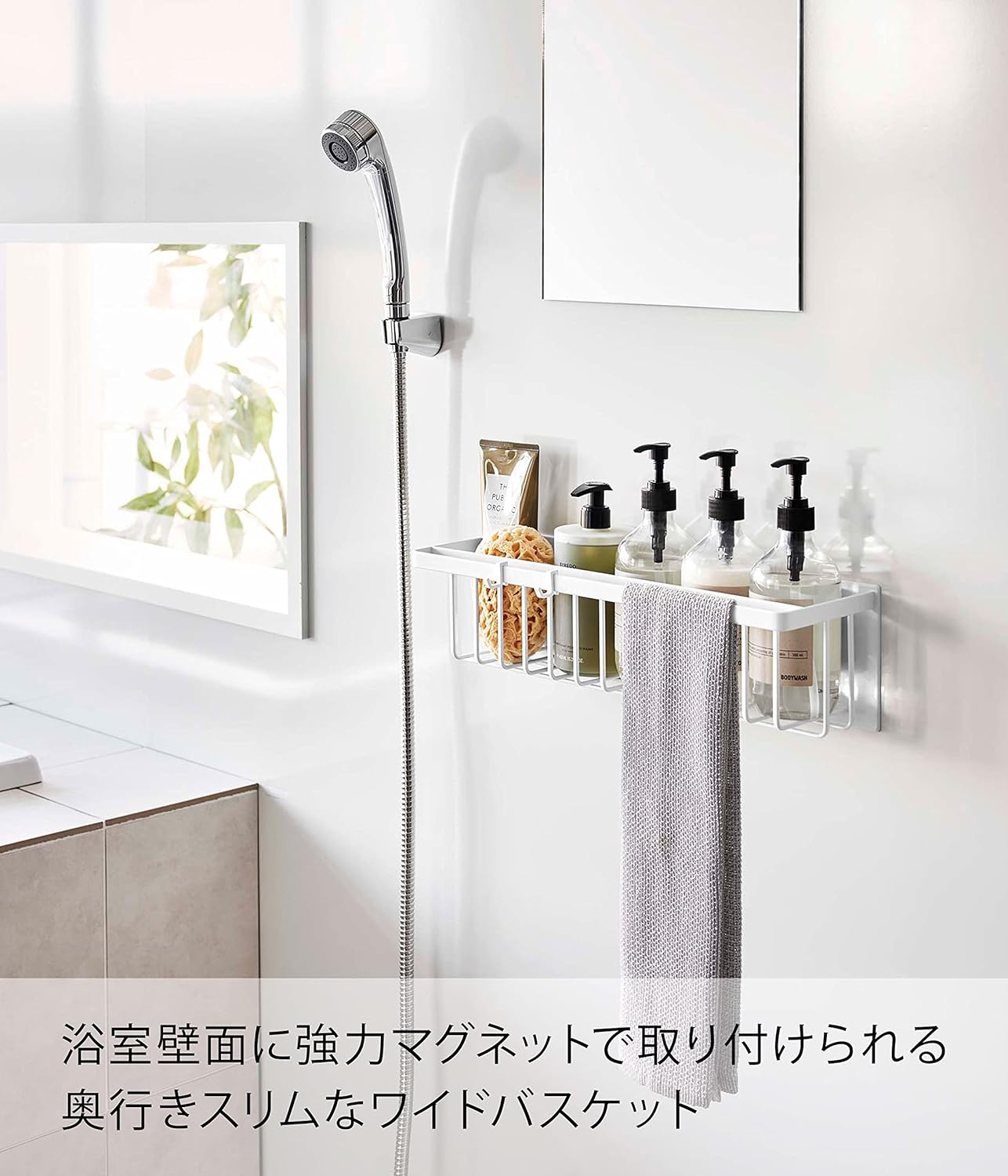 山崎実業(Yamazaki) マグネット バスルームバスケット ワイド ホワイト