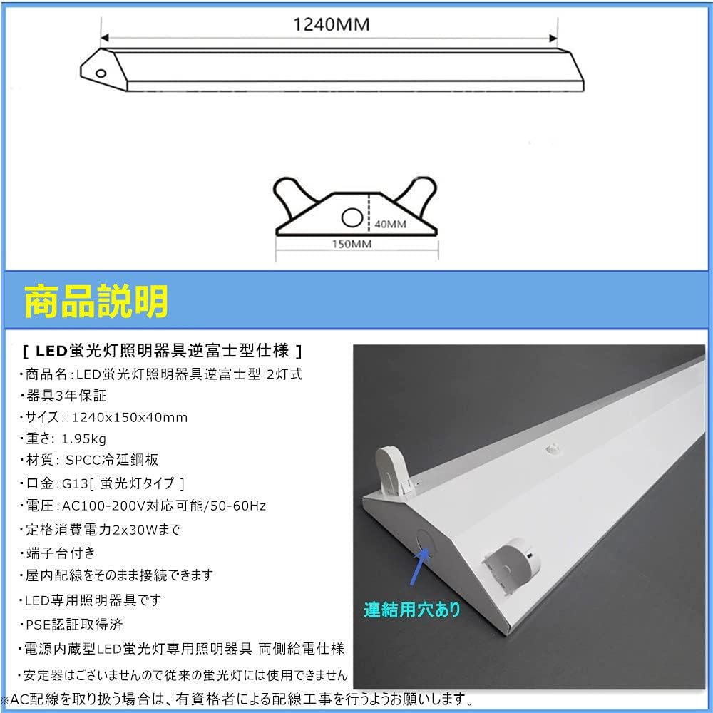 昼光色 逆富士型 40W形 2灯式 LED蛍光灯付き べースライト 照明