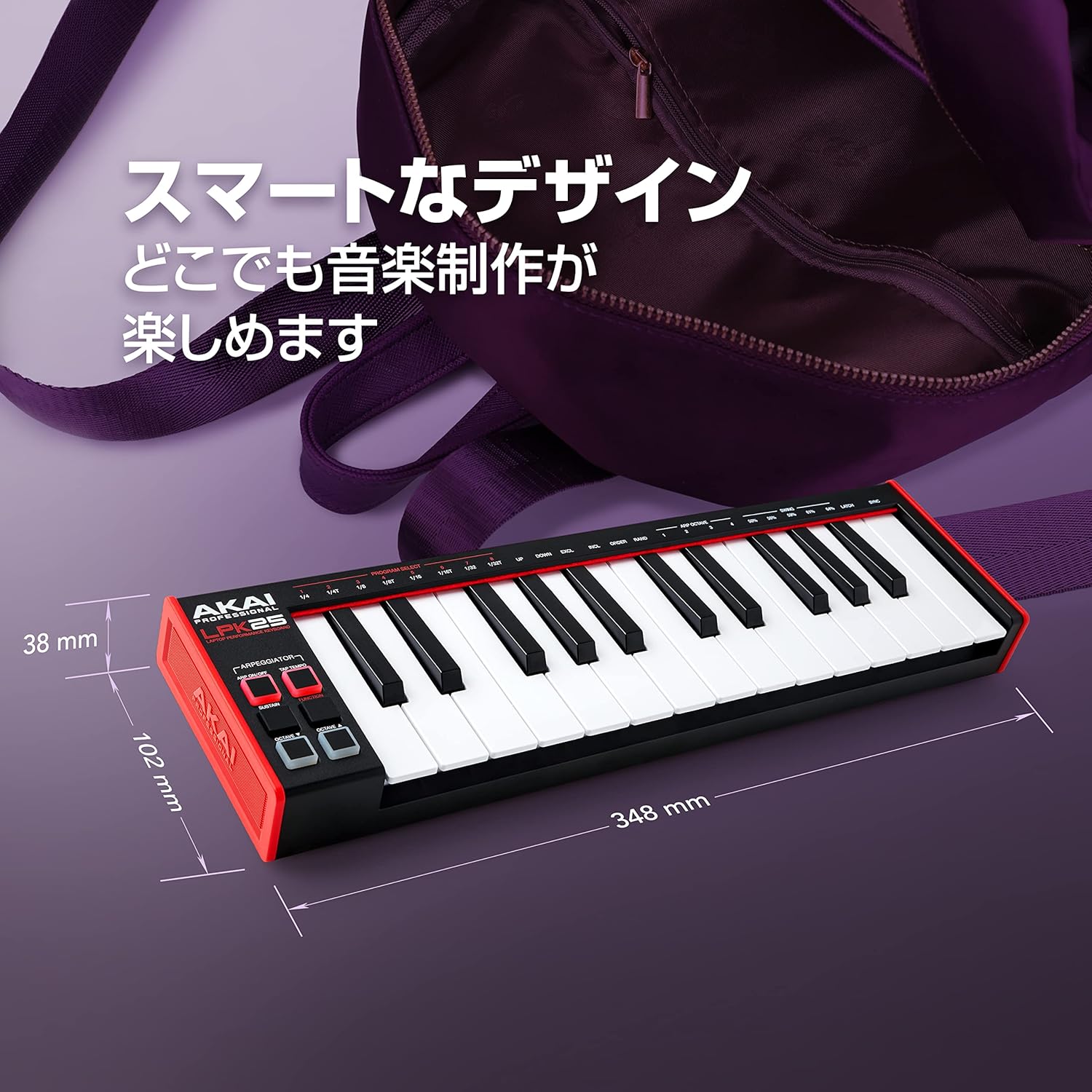 25鍵のキーベッドとアルペジエーター搭載 音楽制作ソフトウェア付属 Mac/Win PC対応