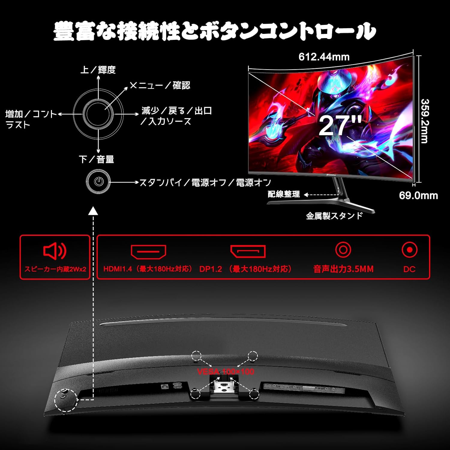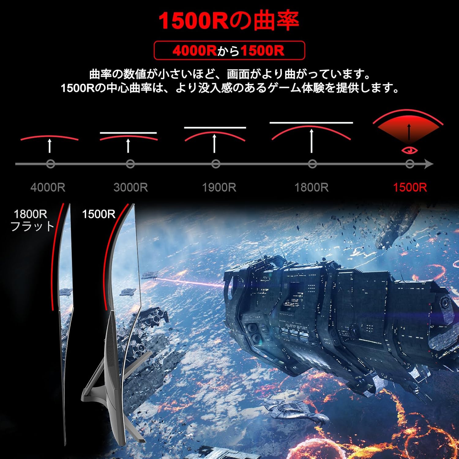 1500R曲面 スピーカー内蔵 AMD FreeSync HDR対応 300cd/?輝度 178°