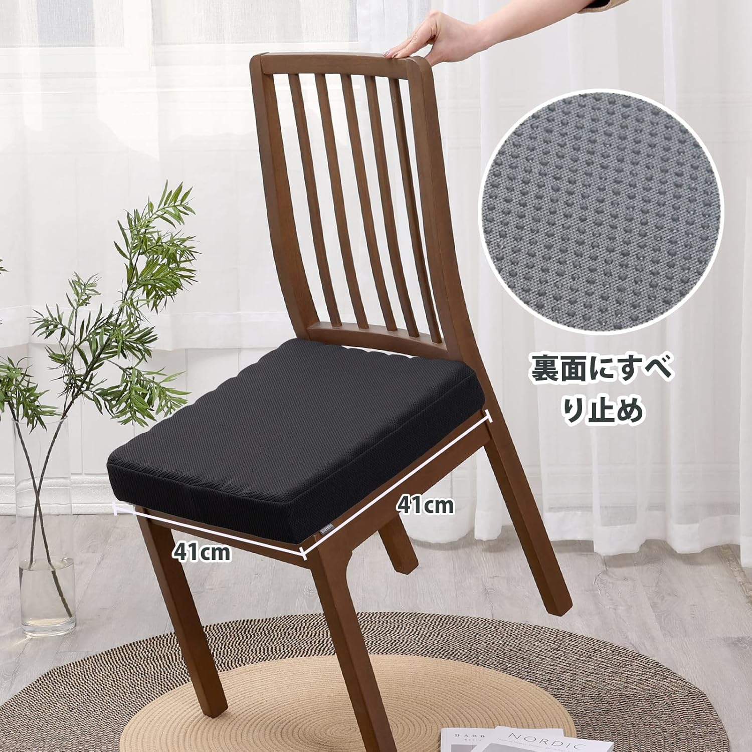 厚め 通気 高反発 椅子クッション お尻が痛くならない ざぶとん フロアクッション 幅41cm厚さ7.5cm (41X41, くろい)
