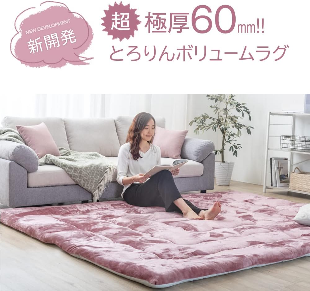 1.5畳 130×185cm 極厚60mm とろりん ラグ 抗菌 防臭 防ダニ 低ホル 長方形 フランネル 65010008(96215)