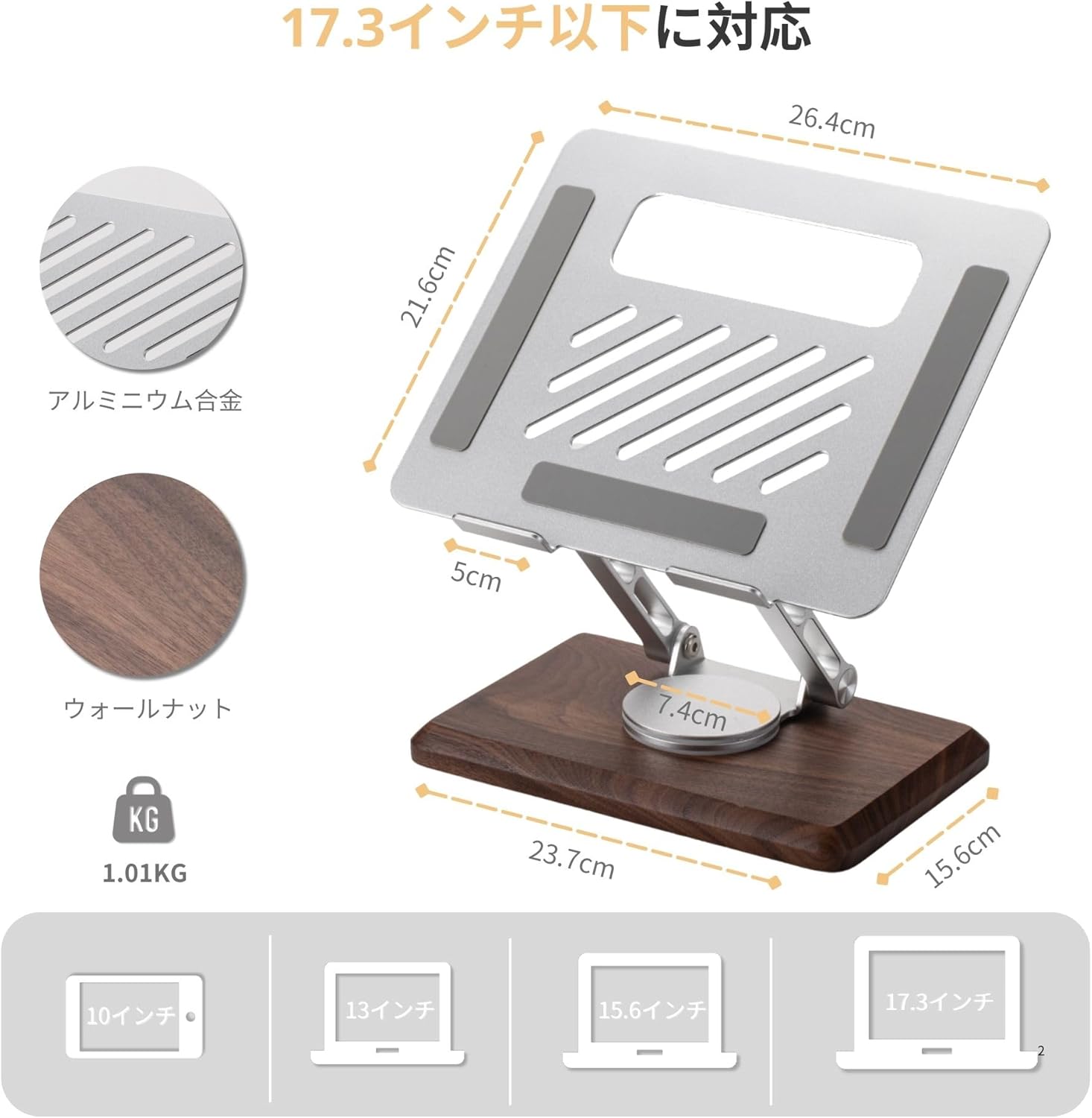 pcスタンド 高さ/角度調整可能 360回転式 パソコン台 卓上 折りたたみ式 ラップトップスタンド