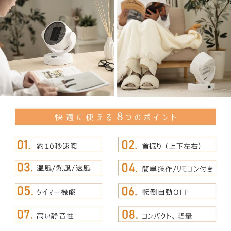 気ストーブ 暖房 送風 速暖 コンパクト 3段階調節 リモコン付き 自動首振り