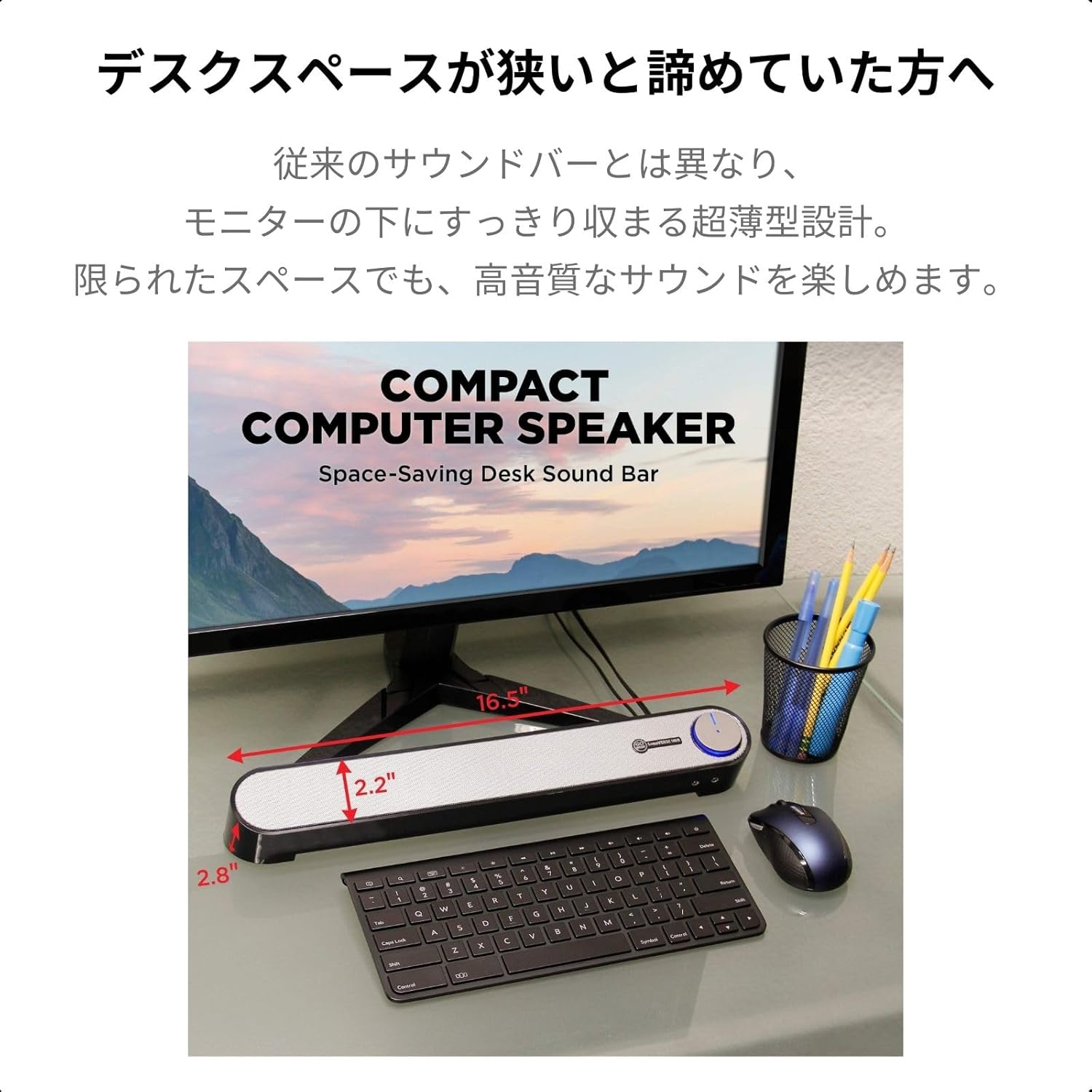 USB 電源 PC サウンド バー 簡単セットアップ 有線 AUX ステレオ