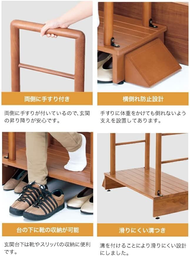 木製 段差 踏み台 玄関ステップ 木製 手すり 玄関 ステップ 手すり付き玄関台 幅80cm