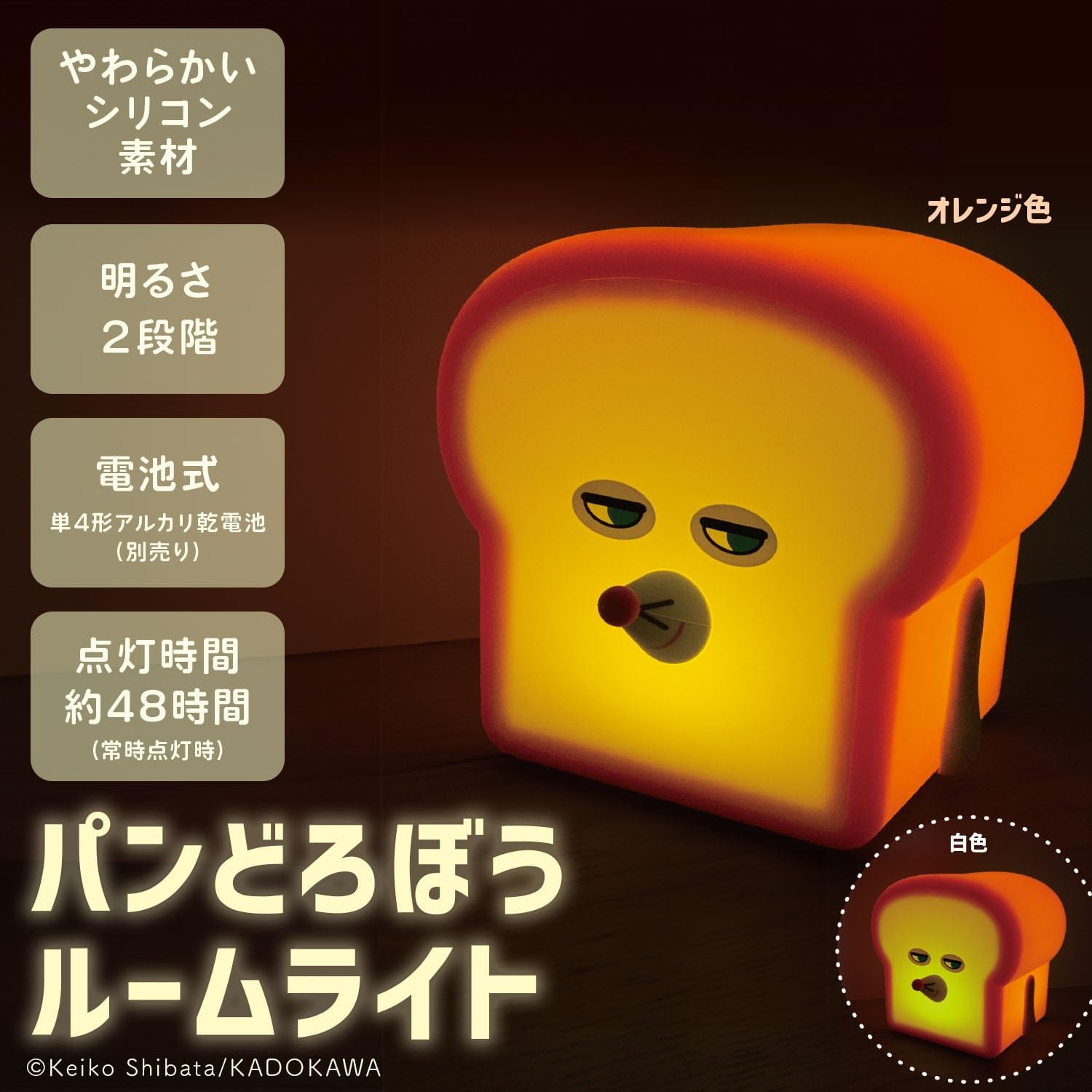 【パンどろぼうがかわいくお部屋を照らす】調色機能が付いた電池式のパンどろぼうルームライトです。