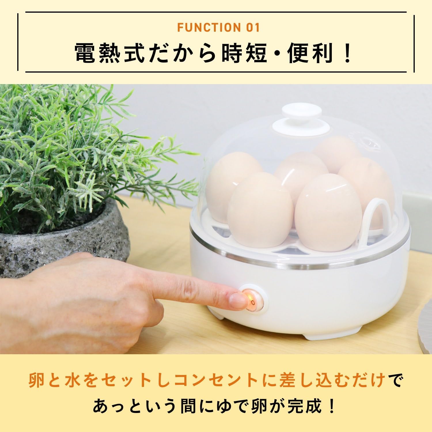 レンジ不要 360W 固さ調節可能 電熱式 ゆで卵器 メーカー ゆで卵調理器 蒸し器 半熟卵 固ゆで卵 ゆでたまご ゆで玉子 煮卵 時短 調理家電