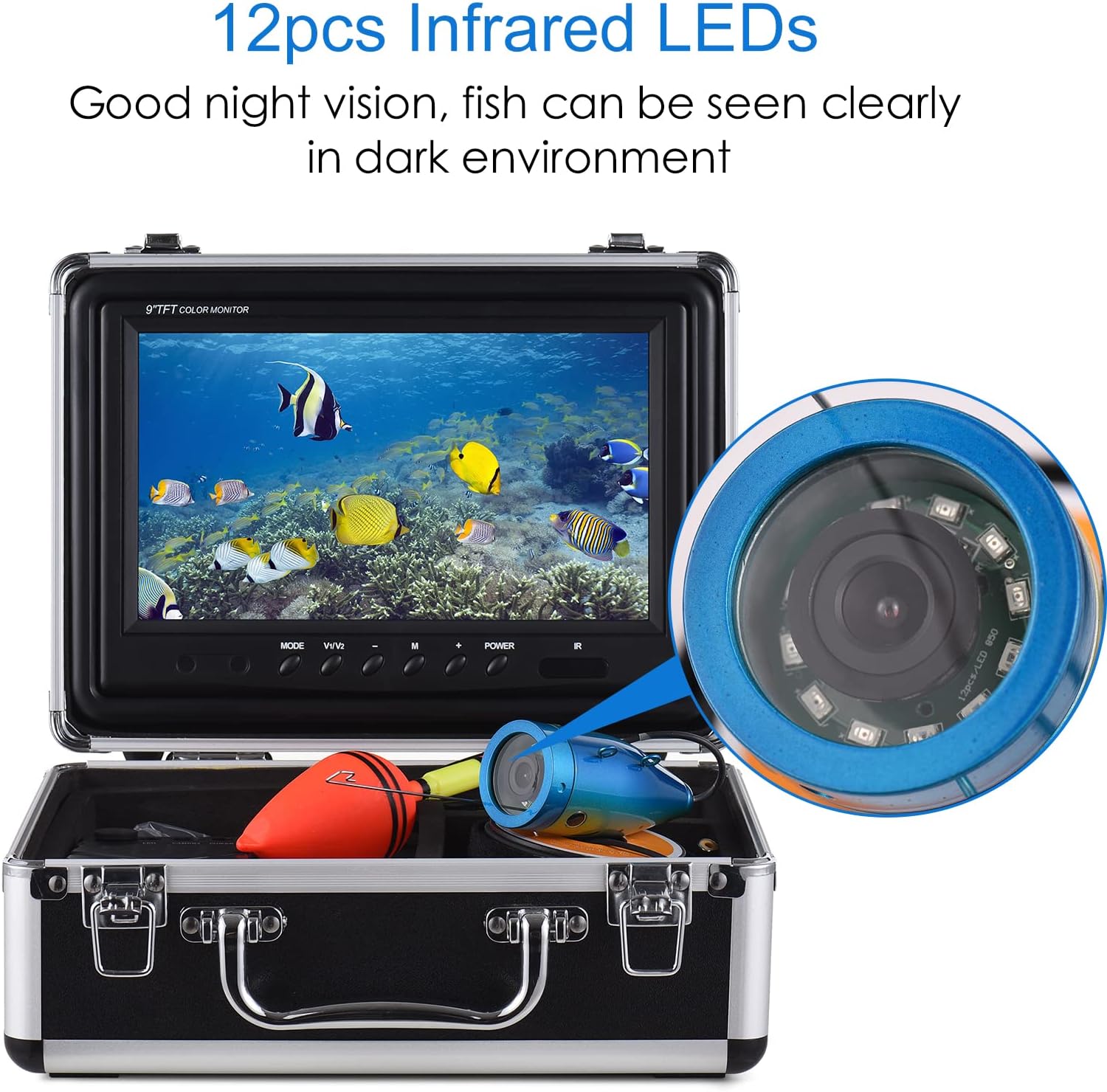 1200TVL 水中釣りカメラ 魚群探知機 12個のLED付き