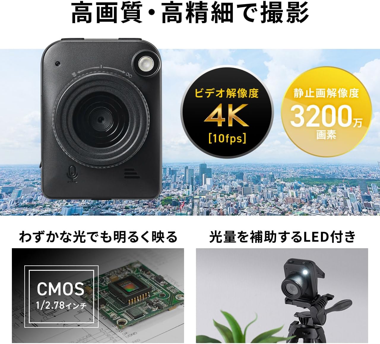 4K対応 ディスプレイ付き バッテリー内蔵 最長6カ月撮影可能 IP54防水ケース付き